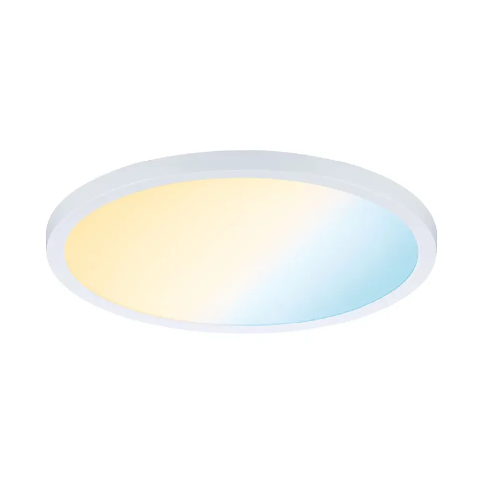 Le panneau encastré rond Areo avec un diamètre de 230 mm et une puissance de 16 watts en Blanc fournit une lumière étendue non éblouissante. Grâce à la technologie VariFit flexible, les ressorts de serrage pour le montage sont réglables en continu entre 50 et 195 mm. Le panneau peut ainsi être encastré dans des trous de perçage déjà présents ou dans de nouveaux trous avec couronne de forage standard. La fonction Tunable White permet de varier la température de couleur à votre guise : du blanc lumière du jour pour le travail au blanc chaud idéal pour la relaxation. L’ampoule est compatible avec Zigbee 3.0 3.0. Zigbee 3.0 est un protocole de transmission radio qui met en réseau les appareils de différents fabricants. Il permet une commande centralisée de l’éclairage que l’on peut étendre par exemple aux volets roulants, radiateurs et systèmes d’alarme.Pour un diamètre d’alésage supérieur à 85 mm, une profondeur de cavité d’au moins 30 mm est requise et pour un diamètre supérieur à 68 mm, une profondeur d’au moins 55 mm est requise.