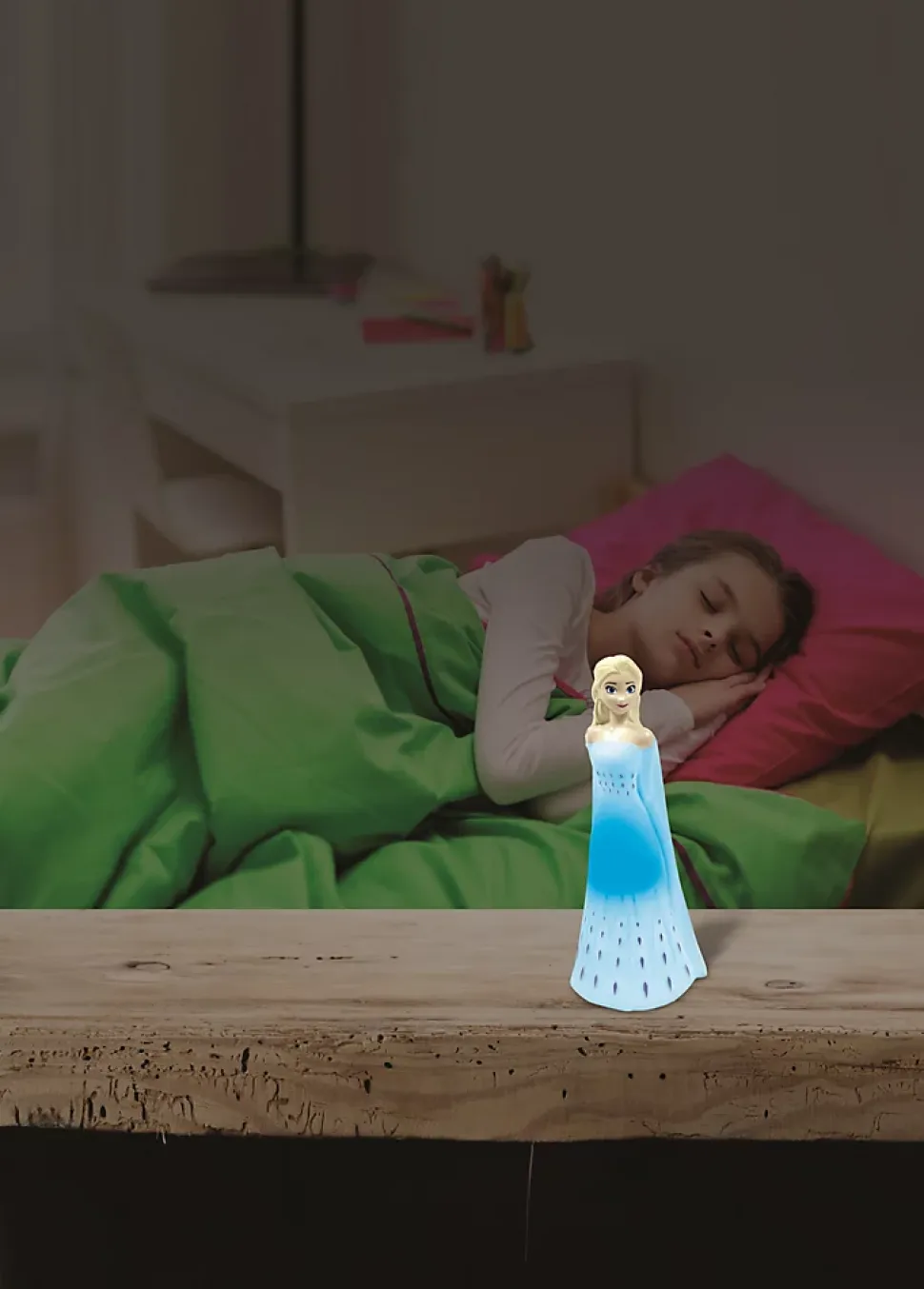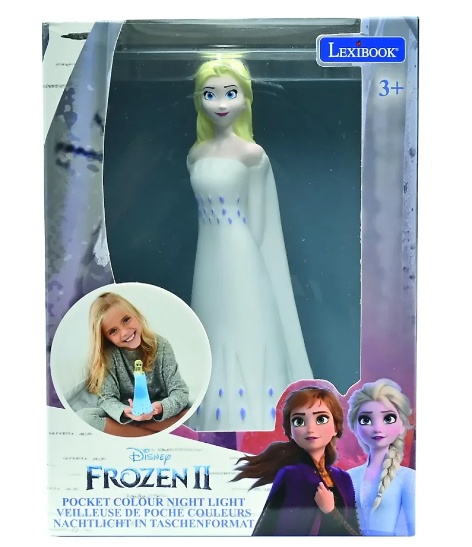 * Lumière LED, économe en énergie, fournit une lumière douce et rassurante.* Super Design d’Elsa avec sa robe de Reine des Neiges !* Format de poche.* Changement de couleur aléatoire.* Alimentation : piles 3 xAG13 /LR44 (inclues)* Dimensions : 13 cm