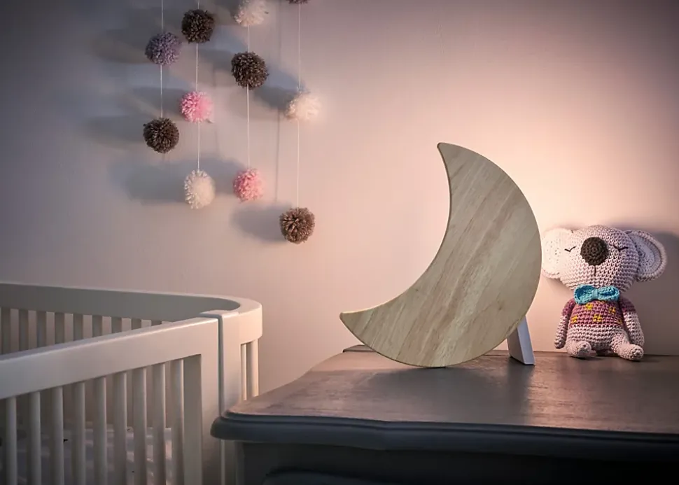 Offrez à votre enfant des nuits calmes et rassurantes avec la veilleuse musicale Bluetooth en forme de lune de BigBen Connected. À la fois veilleuse design, lampe de chevet enfant et enceinte sans fil, elle diffuse une lumière chaude et douce idéale pour l’endormissement, tout en diffusant ses musiques ou berceuses préférées. Cette veilleuse connectée pour enfant combine éclairage d’ambiance, programmateur automatique et enceinte Bluetooth sans fil dans un design élégant en bois blanc. Sa forme de lune apporte une touche décorative à la chambre, tout en créant un environnement rassurant pour l’enfant. Idéale comme lampe de chevet, veilleuse de nuit ou objet déco lumineux, cette veilleuse BigBen Connected accompagnera les enfants comme les adultes dans un univers de détente et de bien-être.