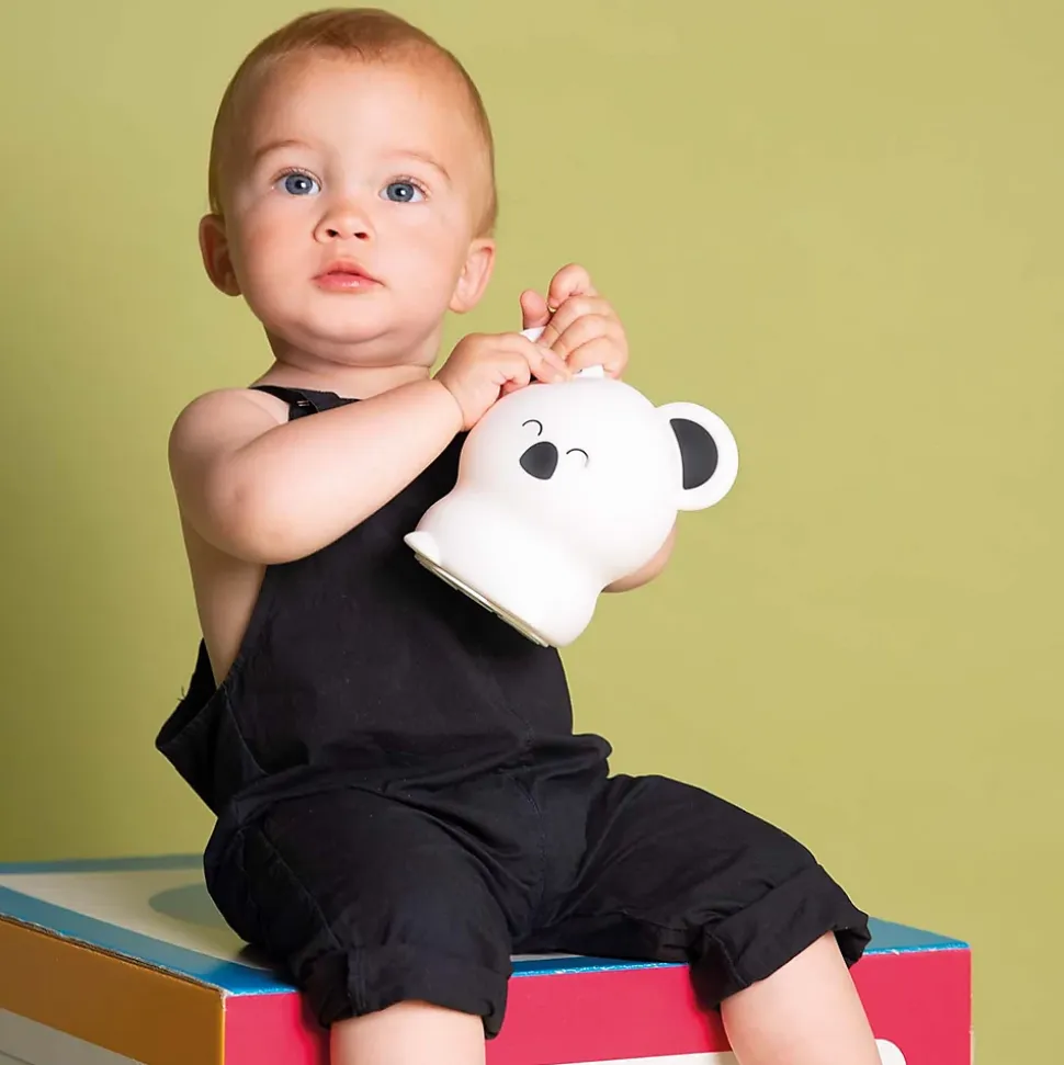 Veilleuse Koala en Silicone Souple – Little LApportez douceur et sérénité aux nuits de votre enfant avec Koala, la veilleuse en silicone souple de la marque Little L. En plus de son design adorable, cette veilleuse LED propose trois modes d’éclairage : une lumière blanche apaisante, un mode arc-en-ciel qui change de couleur en douceur, ou un mode couleur fixe (7 tons au choix). Parfaite pour créer un environnement rassurant et calmant pour votre tout-petit, le koala devient vite un compagnon nocturne indispensable.Fonctionnalités de la Veilleuse KoalaModes d’illumination : Passez facilement d’une lumière blanche à un mode arc-en-ciel ou une couleur fixe en tapotant la veilleuse ou en utilisant la télécommande fournie.Contrôle à distance : Grâce à la télécommande (pile incluse), ajustez les modes lumineux à distance et profitez des options supplémentaires comme le timer (1h, 2h, 4h ou 6h).Autonomie et recharge : Jusqu’à 14 heures de lumière selon le mode choisi, avec une recharge rapide via le câble USB fourni.Sécurité LED : La veilleuse Koala reste froide au toucher, garantissant une sécurité totale pour les enfants, même lorsqu’ils la manipulent.Dimensions pratiques : Avec ses dimensions compactes de 10 x 13 x 13,5 cm, elle est idéale pour la table de chevet ou à emporter lors de déplacements.Pourquoi choisir la veilleuse Koala de Little L ?La veilleuse Koala de Little L est idéale pour accompagner votre enfant durant toute la nuit. Grâce à ses différentes options de lumière douce et colorée, elle crée un environnement apaisant et sécurisant