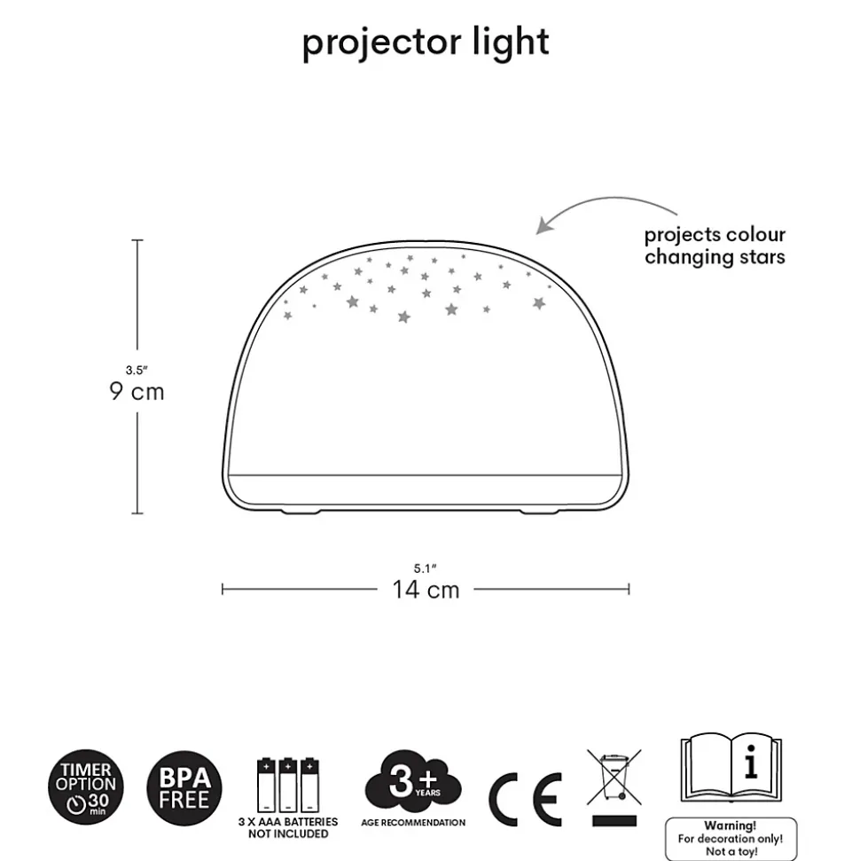 Une douce nuit étoilée avec la veilleuse projecteur d’étoiles – A Little Lovely CompanyUn ciel étoilé pour rassurer votre enfant au moment du coucherDécouvrez la veilleuse projecteur d’étoiles de la marque A Little Lovely Company, l’accessoire parfait pour apaiser les nuits de votre enfant. Cette veilleuse LED projette de magnifiques étoiles colorées au plafond : orange, vert, bleu ou un doux arc-en-ciel, pour une ambiance magique propice à l’endormissement.Fonctionnelle et sécurisée pour accompagner le sommeil des plus petitsFacile d’utilisation, cette veilleuse enfant est équipée d’une minuterie de 30 minutes pour une extinction automatique. Grâce à son éclairage LED, elle ne chauffe pas et fonctionne avec 3 piles AAA (non incluses). Conçue en plastique ABS sans BPA, phtalates ni plomb, elle est idéale dès 3 ans.Les atouts de la veilleuse projecteur A Little Lovely CompanyProjection étoilée multicolore : étoiles orange, vert, bleu ou arc-en-cielMinuterie automatique : s’éteint seule après 30 minutes pour préserver l’autonomieÉclairage LED sans surchauffe – fonctionne avec 3 piles AAA (non incluses)Design nomade et sécurisé : léger, sans BPA, phtalates ni plomb, idéal dès 3 ansParfait comme veilleuse ou élément de décoration pour une ambiance apaisanteDisponible en plusieurs modèles : espace, dinosaures, licorne, amis de la forêt…Caractéristiques techniquesDimensions : 14 x 9 x 14 cmMatière : plastique ABSÂge conseillé : à partir de 3 ansAlimentation : 3 piles AAA 1