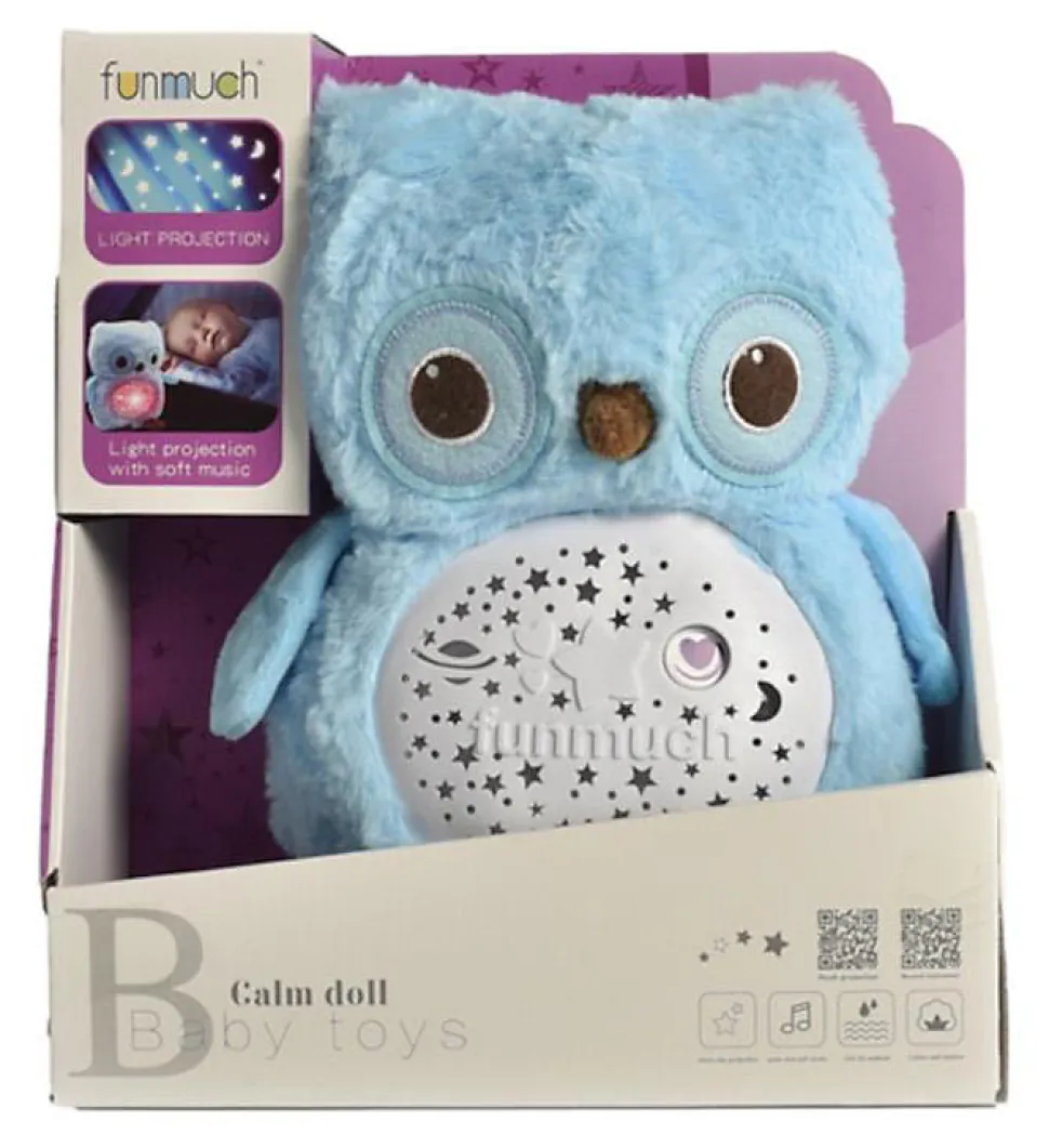 Veilleuse projection son et lumière Chouette Funmuch.Cette veilleuse chouette est le compagnon réconfortant idéal pour votre petit à l’heure du coucher. La lumière douce et apaisante procure un sentiment de sécurité, tandis que l’adorable design en forme de chouette ne manquera pas de plaire aux enfants de tous âges.Cette veilleuse en peluche est lavable et tous les détails tel que les yeux ou autres sont brodés et en tissus pour eviter tous risque pour bébé.Caractéristiques :Projection de lumièreMusique doucePeluche lavableTexture douceDimensions (+-) : 200 x 120 x H250 mm