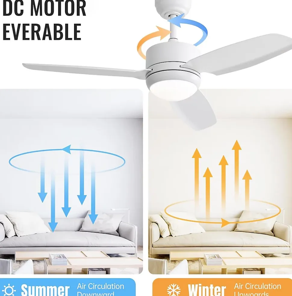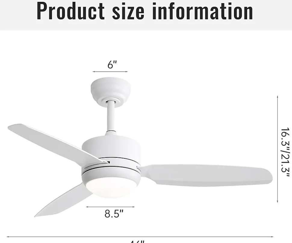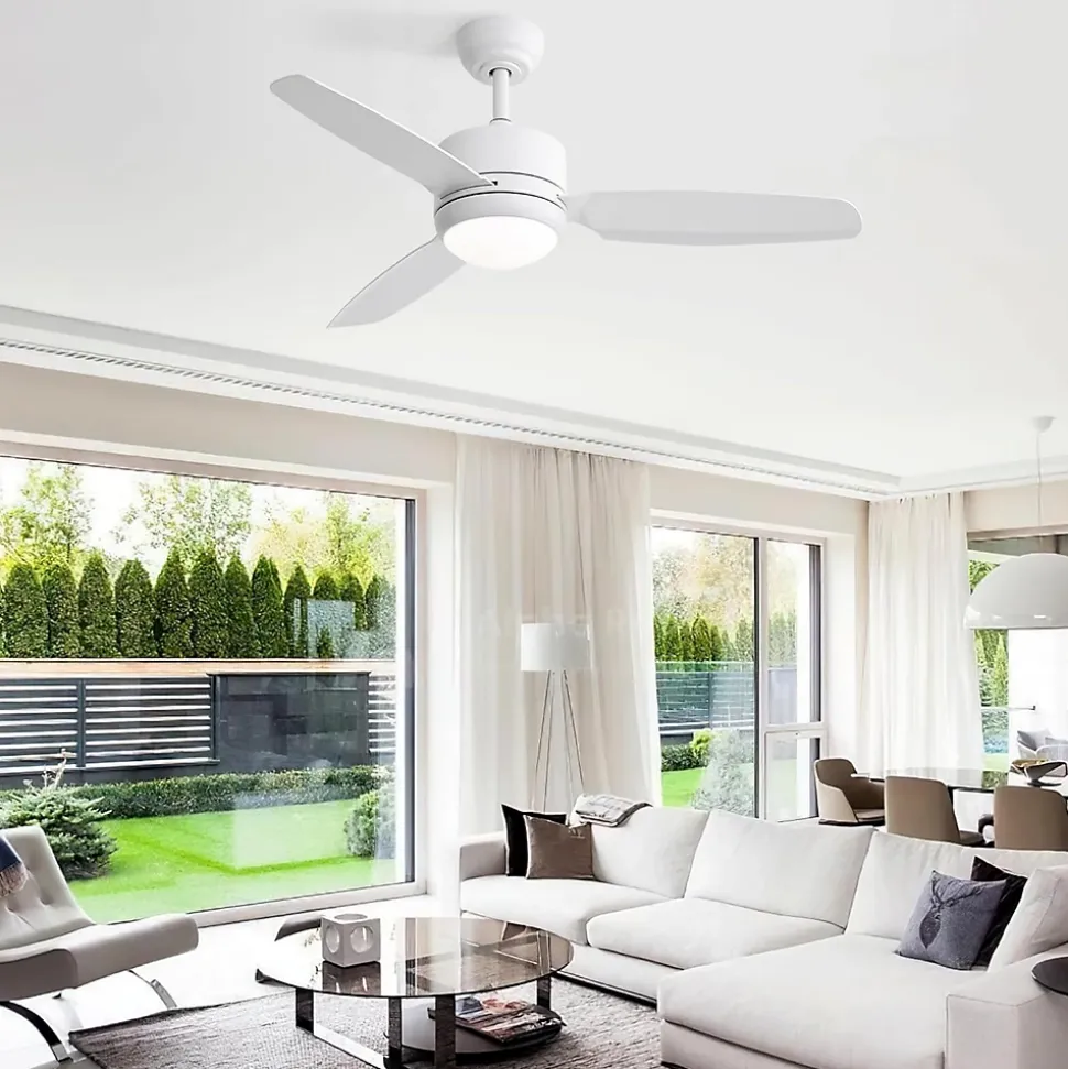 【Lames ABS】3 lames aérodynamiques en ABS résistant à la chaleur – légères, silencieuses et idéales pour les intérieurs modernes【Moteur à économie d’énergie】Moteur à courant continu avec bobine en cuivre – 65 % plus efficace que le courant alternatif, avec fonctionnement avant et arrière pour l’été et l’hiver【Lumière LED avec 3 couleurs】Lumière LED intégrée de 18 W avec température de couleur réglable : blanc chaud (3000 K), blanc neutre (4000 K), blanc froid (6000 K)【Télécommande】Contrôle de 6 vitesses, minuterie (1/4/8 heures), modes d’éclairage et fonction marche arrière via la télécommande【Utilisation polyvalente】Convient pour les chambres à coucher, les salons, les chambres d’enfants, les bureaux ou les espaces extérieurs couverts – pour les pièces jusqu’à environ 15㎡Caractéristiques du produit :Diamètre : 117 cm (46 pouces)Couleur : boîtier blanc avec pales blanchesMatériau : ABS (résistant aux chocs, à la chaleur et à l’humidité)Moteur : moteur à courant continu avec noyau en cuivre, silencieux et économe en énergieNiveau sonore : <35 dBVitesses : 6 niveauxSource lumineuse : LED 18 W, 3 CCT (3 000 K/4 000 K/6 000 K), avec fonction mémoireFonctionnement : Télécommande avec minuterie (1/4/8h), contrôle de la lumière et changement du sens de rotationModes de fonctionnement : Marche avant et arrière – idéal pour l’été et l’hiverTension : 85–265 V, 50–60 HzInstallation : Montage au plafond avec deux tiges de suspension sélectionnables (5″/10″)Taille de pièce recommandée : 8–15 m² (par ex. B. Chambre à coucher, salon, salle à manger, bureau à domicile, balcon)