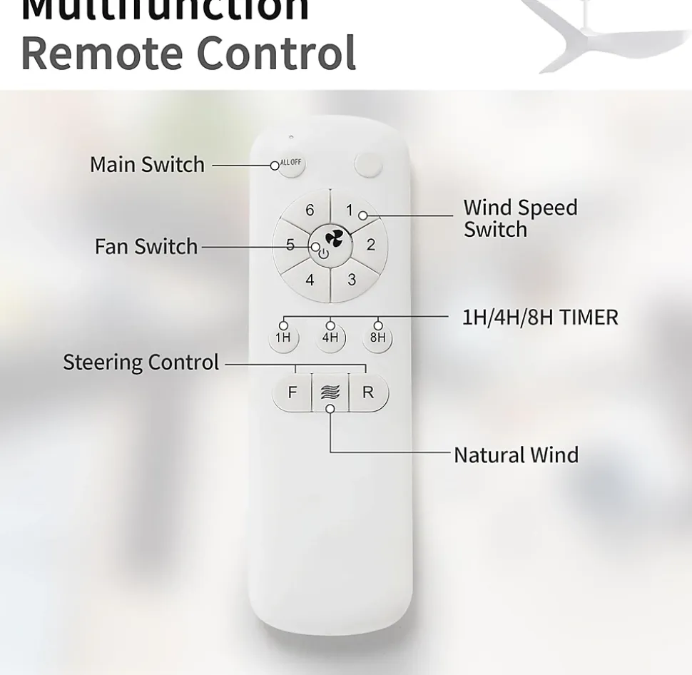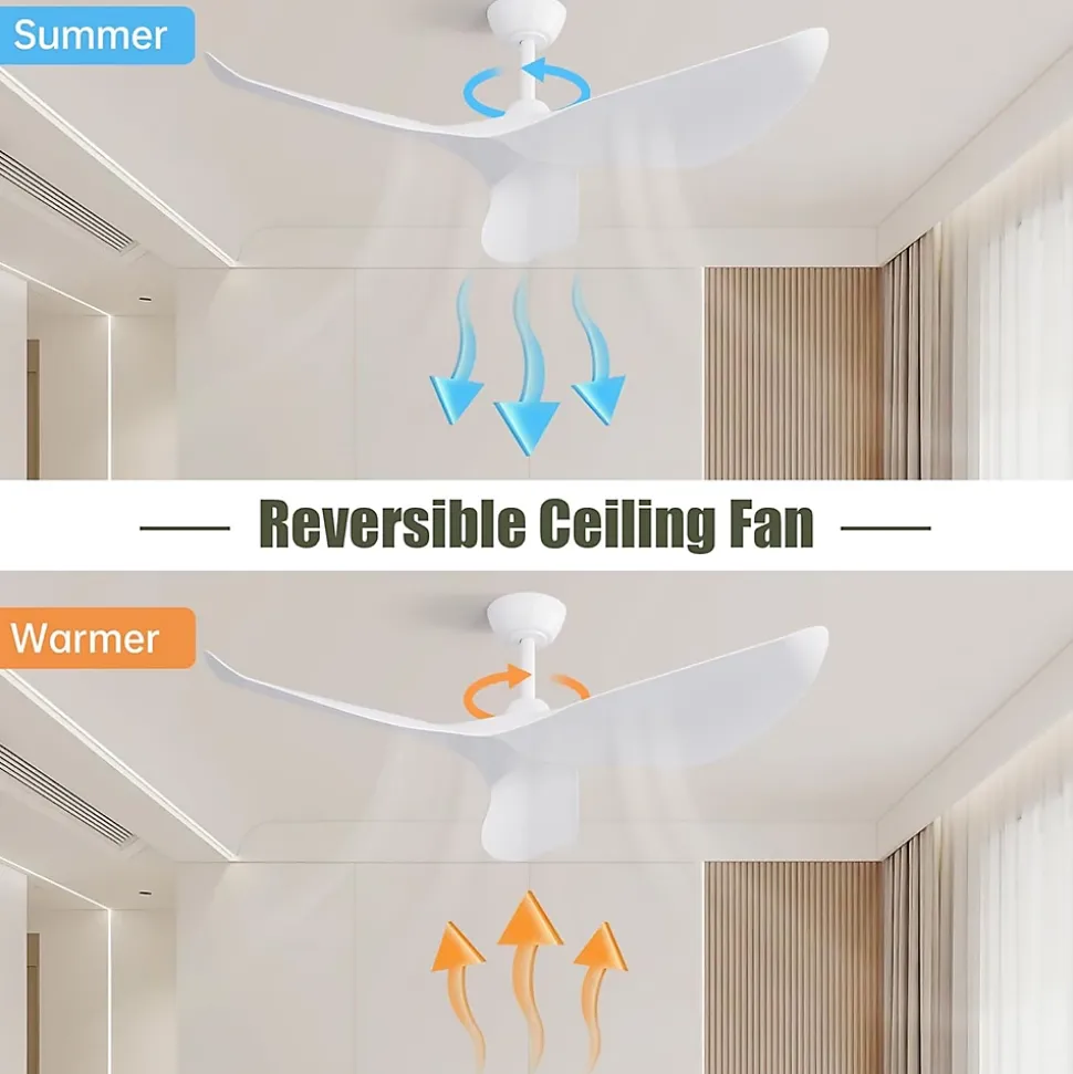 【Moteur DC écoénergétique】 Profitez d’une consommation réduite grâce à un moteur DC 65 % plus efficace que les modèles AC traditionnels, assurant un fonctionnement silencieux et une ventilation performante.【Utilisation toute l’année】 Grâce à son moteur réversible, le ventilateur assure une circulation d’air adaptée aux saisons : rafraîchissement en été et chaleur mieux répartie en hiver.【Puissant flux d’air】 Ce ventilateur génère un fort mouvement d’air tout en restant silencieux, idéal pour rafraîchir en été et redistribuer la chaleur en hiver.【Télécommande pratique】 Ajustez facilement la vitesse du ventilateur parmi 6 niveaux, activez la minuterie et changez le sens de rotation pour un confort optimal toute l’année.【Installation polyvalente】 Convient aux espaces intérieurs et extérieurs, idéal pour le salon, la chambre, la cuisine, la terrasse, le bureau, le garage et d’autres espaces résidentiels ou professionnels.Caractéristiques du produit :Diamètre : 132 cm (52 pouces)Couleur : Blanc avec pales en ABS blanchesMatériau : Plastique ABS et métalMoteur : Moteur à courant continu – silencieux, économe en énergie, durableNiveau sonore : <35 dBVitesses : 6 niveaux via la télécommandeModes de fonctionnement : Mode été (marche avant), mode hiver (marche arrière)Contrôle : Télécommande avec minuterie (1/4/8 heures)Tension : 85–265 V, 50–60 HzTaille de la pièce : 15–33 m² – convient pour un salon, une chambre, un bureau, une salle à manger, un balcon ou un loft