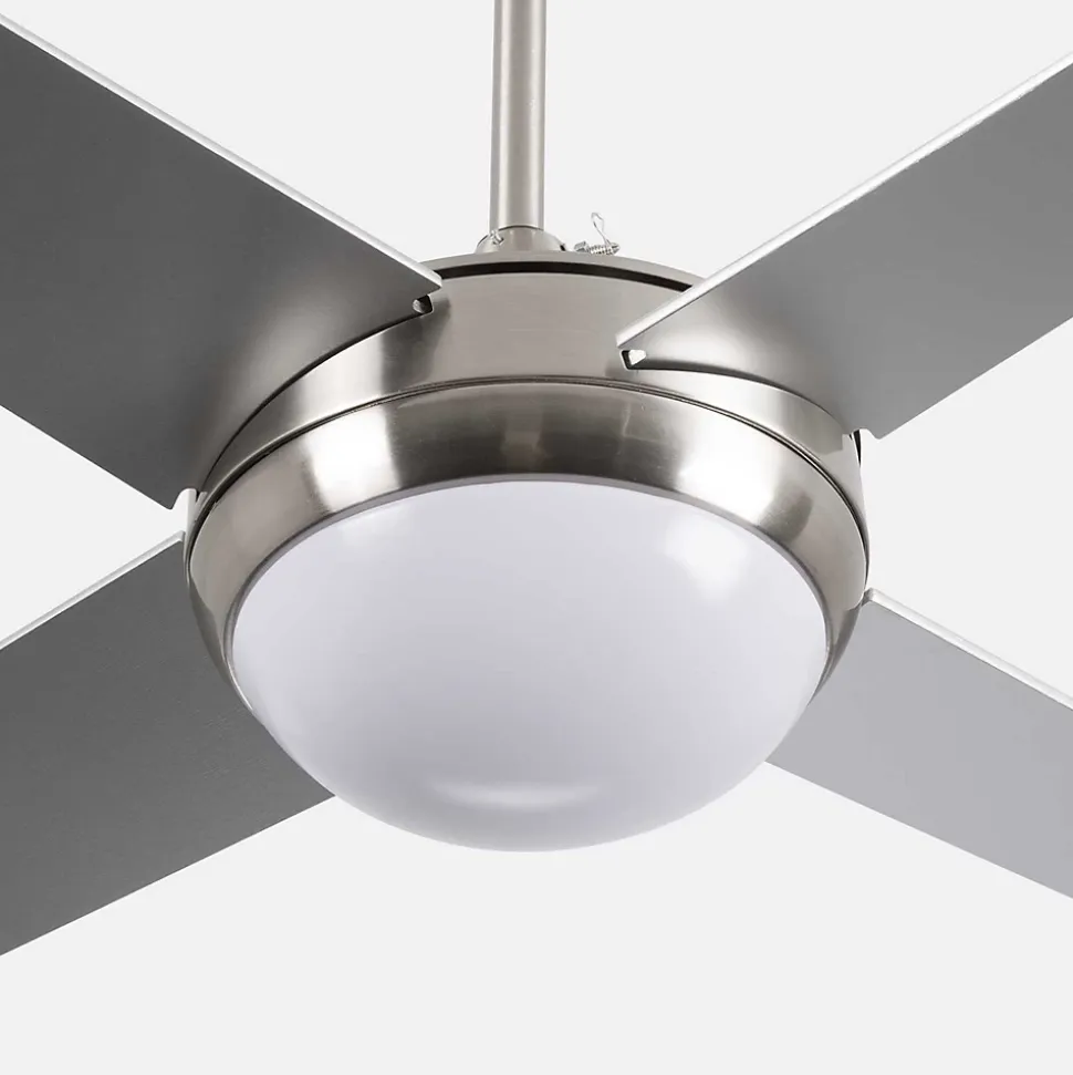 Ventilateur de plafond Montana de Dayron, une pièce d’avant-garde qui gardera l’environnement ventilé même pendant les journées les plus chaudes. Cet appareil dispose d’une puissante lumière LED et jusqu’à 6 vitesses de fonctionnement (80-200 tr/min). Ses 56W de puissance et son moteur DC de 153cm feront tourner ses 4 pales avec puissance.Fabriqué en fer, nickel et plastique ABS. De couleur argent. Ce ventilateur de plafond présente une température de lumière chaude/blanche et une température de couleur allant de 3 000 à 6 000 K. Son design original de couleur argent et sa taille compacte le rendent idéal pour des pièces jusqu’à 20 m² environ. Réversible, il dispose d’une fonction été/hiver.Équipé d’une télécommande pour un fonctionnement confortable. Son moteur silencieux crée instantanément une sensation d’air frais. Oubliez la chaleur et installez un ventilateur de plafond élégant et fonctionnel dans votre chambre, salon ou salle à manger. La boîte comprend la notice et les accessoires nécessaires au montage. Pour rafraîchir votre maison, choisissez Dayron.