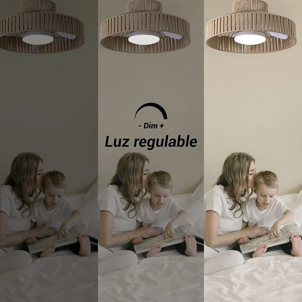 Ventilateur de plafond avec lumière WINDSOR de Sulion. Avec un diamètre de 52 cm et un large flux d’air, il est parfait pour les petites pièces jusqu’à 13 m². Son design exclusif intègre un abat-jour décoratif en cordes naturelles, imitant une suspension lumineuse.Il dispose des fonctions I Feel, brise et minuteur. La lumière LED intégrée est réglable en intensité et en température.Les nouveaux ventilateurs Sulion sont équipés du moteur DC 2.0, réduisant le bruit, améliorant le démarrage et la durabilité, tout en diminuant la consommation d’énergie grâce à de meilleures performances mécaniques et électriques.Convertible en plafonnier.Étiquette énergétique : F.