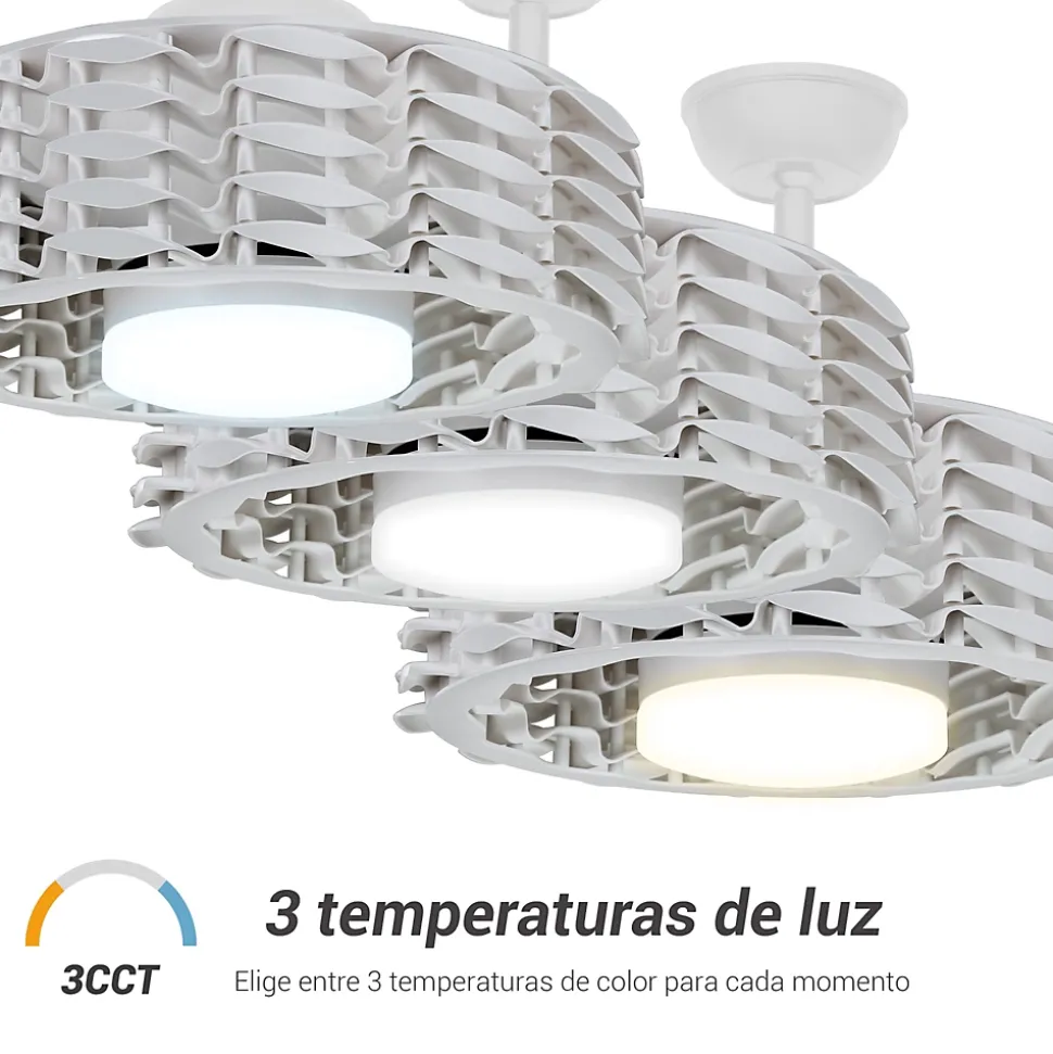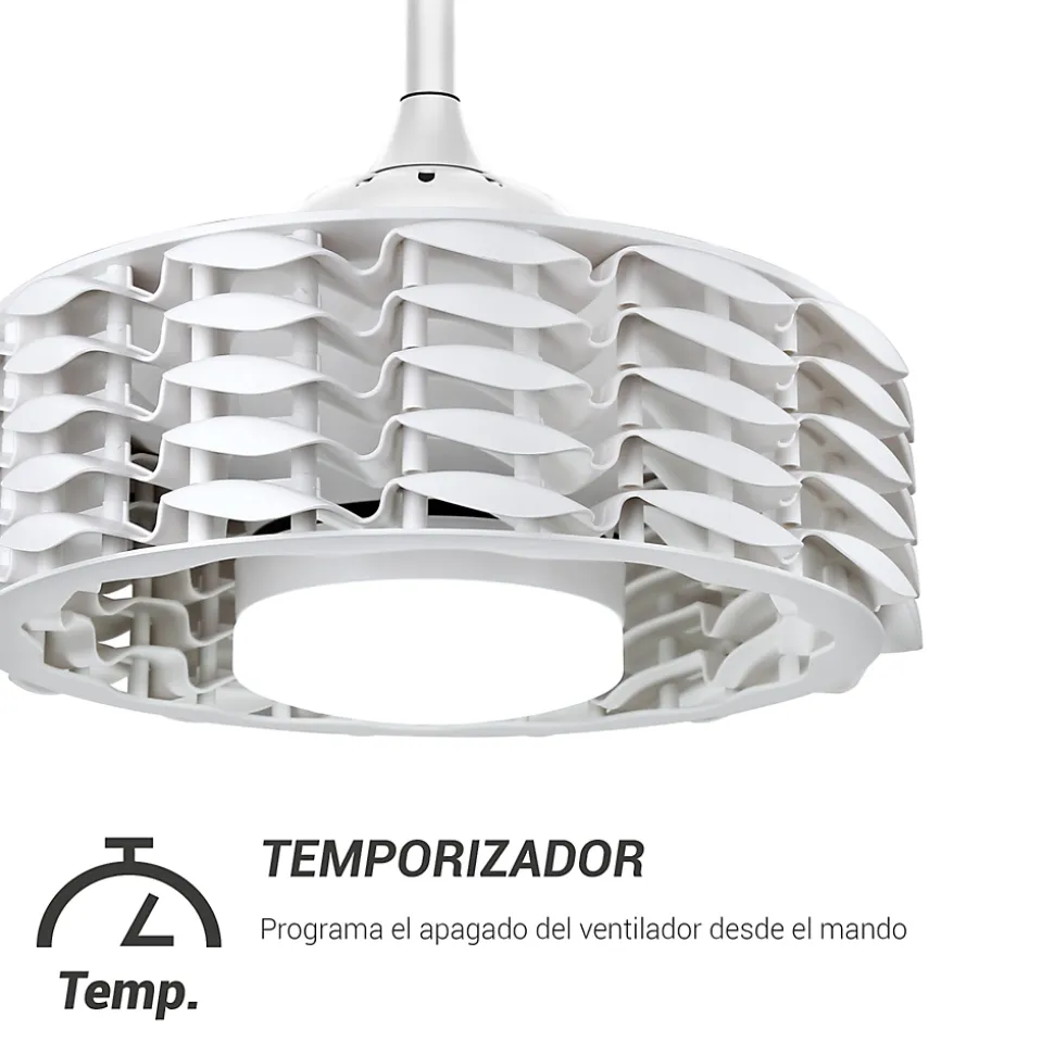 Le modèle Magic est un ventilateur au concept différent, intégrant une technologie innovante qui aspire l’air par la partie centrale, créant ainsi une distribution homogène dans la pièce. Sa structure latérale est en acrylique, complétée par une structure métallique pour le système d’éclairage, assurant une haute dissipation thermique. Il fonctionne avec un moteur DC. Il dispose d’une source lumineuse LED de 24W avec une grande puissance d’éclairage. La température de couleur est réglable, du blanc chaud au blanc froid.Il peut être installé au ras du plafond sans perte de flux d’air, ou bien avec une tige de 15 cm. Il est équipé d’un minuteur, du mode hiver et du mode brise naturelle. Disponible en blanc.