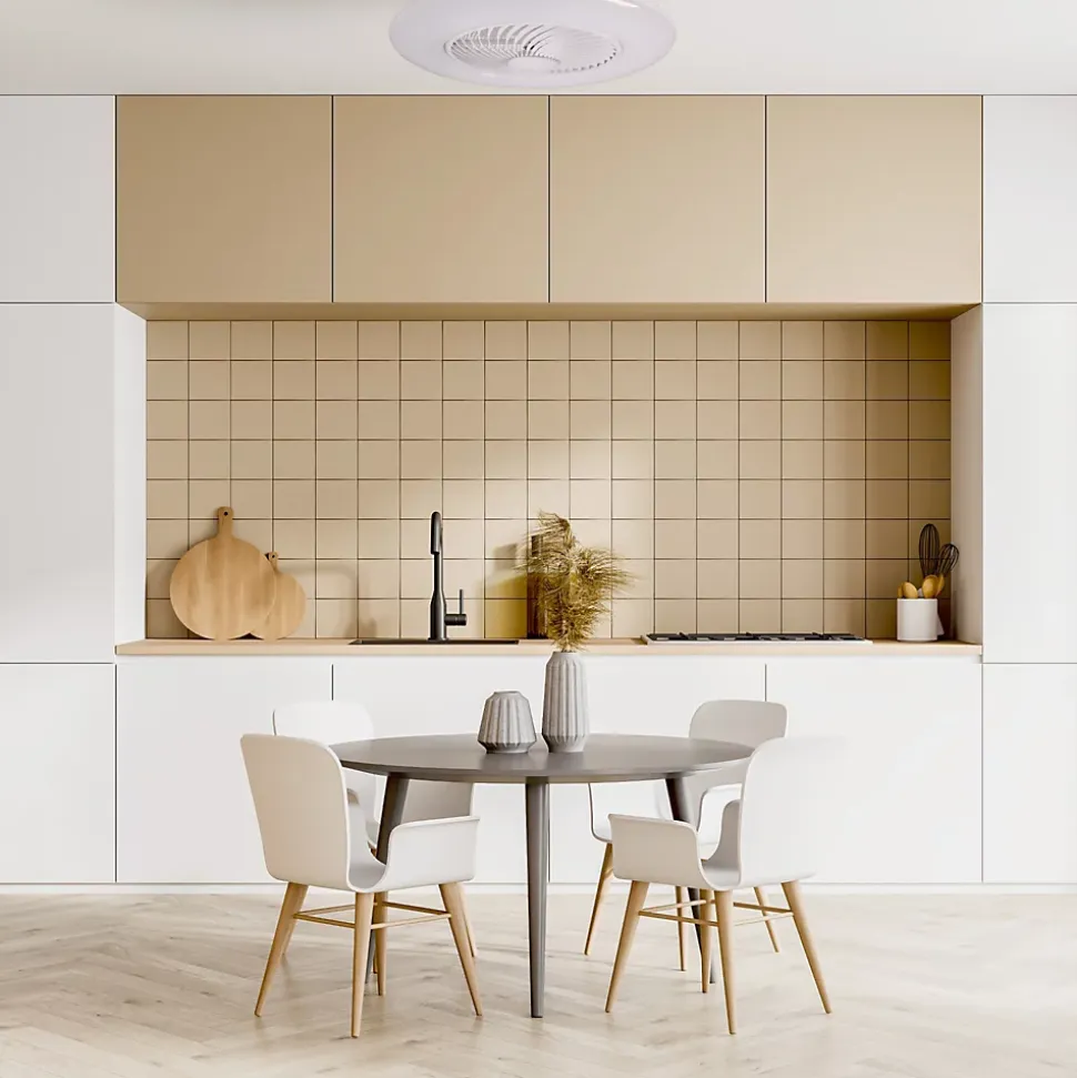 Il s’agit d’un luminaire de grande puissance avec un ventilateur DC intégré et une grille rotative. Il est possible de sélectionner à la fois la température de couleur et l’intensité lumineuse, s’adaptant ainsi à tout moment de la journée et à n’importe quelle pièce. À l’intérieur, un puissant ventilateur permet de ventiler efficacement une pièce de taille moyenne, et grâce à sa grille mobile, l’air est distribué de manière plus homogène.