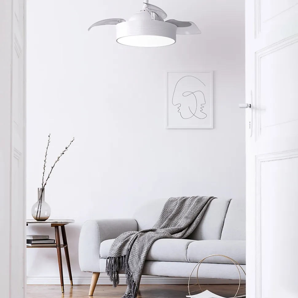 À première vue, Bruma ressemble à un simple plafonnier, mais une fois activé, ses pales rétractables permettent de rafraîchir efficacement de petites pièces. Son moteur DC assure un fonctionnement silencieux avec une consommation minimale. La température de la lumière LED est réglable, s’adaptant à tous les moments de la journée