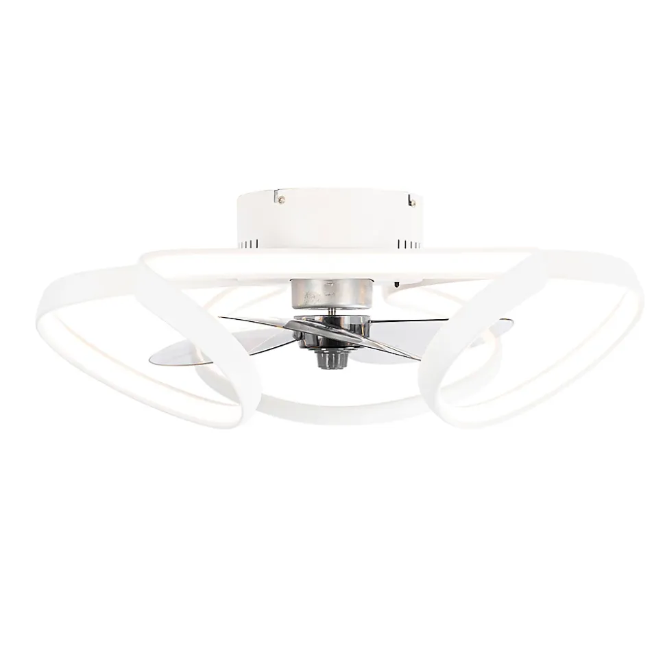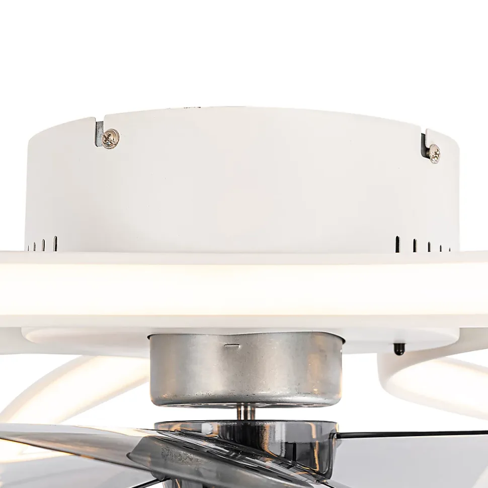 Mandy est un ventilateur de plafond génial ! Avec son design épuré, il est un véritable ventilateur de plafond design. Il est fait de plastique avec de l’acier et est fini en blanc. Les pales sont en plastique transparent. Mandy a un diamètre de 55 cm et une hauteur de 22 cm. La plaque de montage a un diamètre de 18 cm et une hauteur de 8 cm. Le ventilateur de plafond est doté d’un éclairage LED intégré. Ce dernier a un flux lumineux de 1 060 lumens et une température de couleur de 2 700 à 6 500 kelvins. En moyenne, la LED dure 30 000 heures de fonctionnement. Le ventilateur peut être atténué à l’aide de la télécommande fournie. Vous pouvez ainsi créer l’ambiance idéale dans votre intérieur. Optez pour un bel objet design avec une brise rafraîchissante : Mandy !