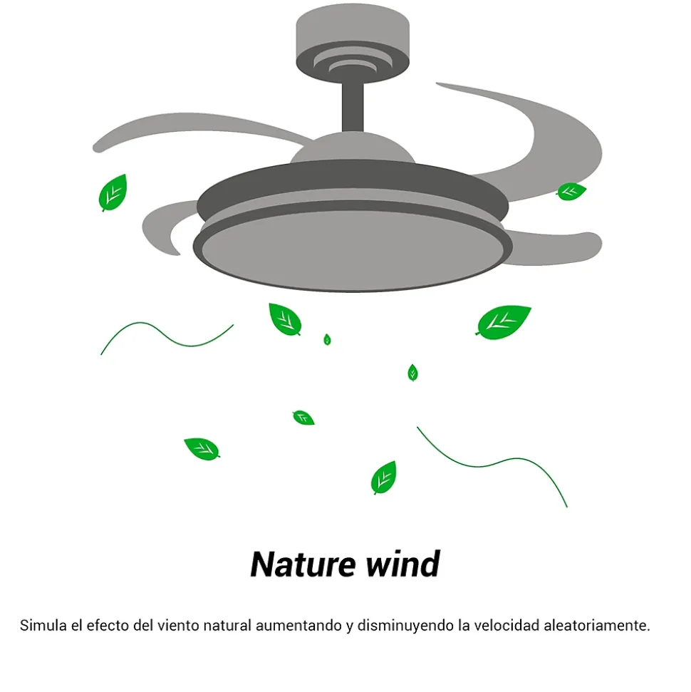 Ventilateur de plafond BOMBAY S marron avec pales rétractables parfait pour les petites pièces. Lorsque vous avez les lames rétractées, cela a l’apparence d’un luminaire. Avec moteur à courant continu, qui garantit une ventilation adéquate, un fonctionnement ultra-silencieux et des économies d’énergie grâce à sa faible consommation. Il se caractérise par sa grande source lumineuse avec changement de température de couleur (chaud, froid et neutre) et fonctions été-hiver, minuterie et vent naturel.