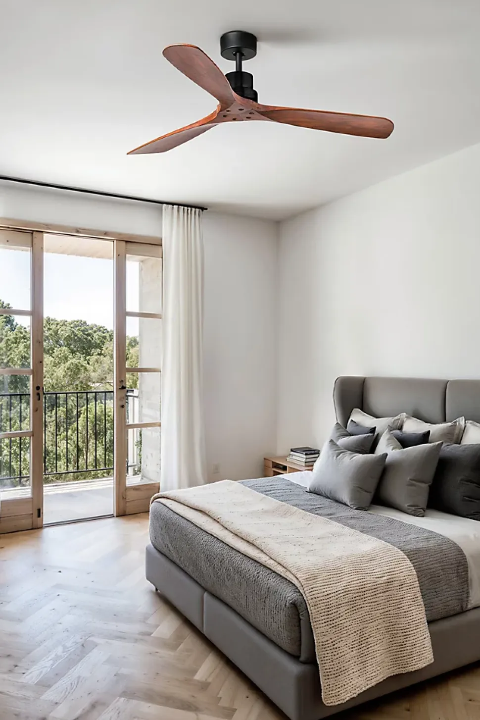 Le ventilateur de plafond design Lantau L de Faro Barcelona est conçu pour garantir un confort thermique optimal et une luminosité efficace toute l’année. Son cadre noir, ses pales effet bois et ses lignes minimalistes en font le choix idéal pour les espaces contemporains de 17,6 à 28 m², tels que les salons, les chambres, les bureaux ou les espaces d’accueil.Au cœur de ce ventilateur se trouve un moteur CC à 6 vitesses, assurant un fonctionnement ultra-silencieux et une consommation d’énergie réduite jusqu’à 70 % par rapport aux moteurs CA. Le débit d’air est réglable sur six niveaux, avec un débit maximal de 5 221 CFM (environ 147 m³/min), s’adaptant ainsi à tous les climats.Le ventilateur se contrôle à l’aide de la télécommande fournie.Parmi ses fonctionnalités avancées, on retrouve une fonction réversible, utile pour optimiser le chauffage en hiver en faisant circuler l’air chaud stratifié. De plus, ce ventilateur est compatible avec les plafonds inclinés jusqu’à 12°. * Moteur CC à 6 vitesses (ultra-silencieux et écoénergétique)* Fonction été/hiver (rotation inversée)* Télécommande incluse* Pales en pin* Débit d’air maximal : 5 221 CFM (147 m³/min)* Convient aux pièces de 17,6 à 28 m²* Compatible avec les plafonds inclinés (jusqu’à 12°)* Installation au plafond | Diamètre de la tige : 132 mm* Indice de protection : IP20 | Classe : ILe Lantau L allie à la perfection design moderne, technologie intelligente et confort visuel et climatique, offrant une solution polyvalente pour tous les espaces résidentiels et commerciaux