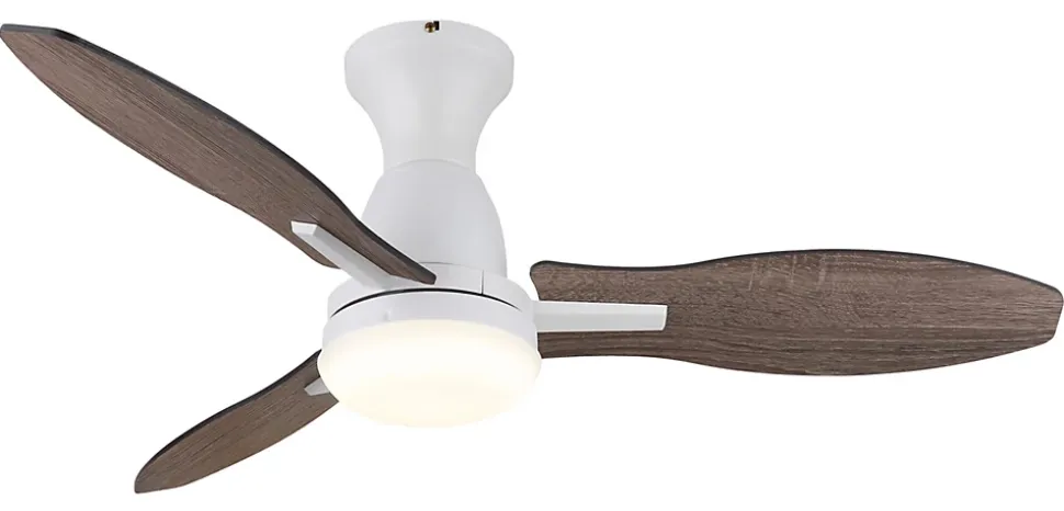 Ventilateur de plafond métal blanc mat, plastique décor bois foncé, décor bois clair, plastique opale, Plusieurs intensités à gérer par un interrupteur mural, couleur fixe, Fonction de mémoire, Timer, Télécommande, Batterie incluse 2x AAA, Puissance moteur maximale 35W, Utilisation optimale de l’espace 25m², Abkühlung, Aufheizen, Niveaux de vitesse 80/120/150/180/210/230 RPM, ø: 1070mm, H: 350mm, incl. LED 22W 230V, 2570lm Source, 1897lm Output, CCT 3000/4200/6000K