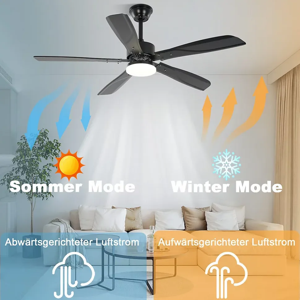 Conception moderne : les pales de ce plafonnier LED avec ventilateur sont fabriquées en fer de haute qualité avec une peinture noire de qualité supérieure, qui non seulement semble classique et élégante, mais aussi plus durable que les pales de ventilateur ordinaires en cours d’utilisation, pas facile à rouiller et à corroder, et la grande taille de 125 cm est également plus adaptée à la plupart des familles. Puces LED de haute qualité, sans scintillement, lumière uniforme et douce, meilleure protection des yeuxVentilateur de plafond multifonctionnel avec lumière : cette lampe ventilateur prend en charge le réglage de la luminosité de 10 % à 100 % et de la température de couleur (3000 K – 6500 K). 6 vitesses de vent peuvent être sélectionnées, ainsi qu’une minuterie de 2/4 heures et un mode veilleuse. Vous pouvez régler la bonne vitesse de lumière et de vent en fonction de vos besoins, ce qui vous rendra plus détendu lorsque vous travaillez ou jouez.Ventilateur de plafond silencieux et rotation bidirectionnelle : la puissance du moteur de ce ventilateur de plafond avec lumière est de 30 W, ce qui permet au ventilateur de fonctionner de manière stable et sûre avec moins de bruit. Le sens de rotation du ventilateur de plafond peut être commuté, ce qui non seulement fournit de la fraîcheur en été mais accélère également la circulation de l’air en hiver. Le ventilateur et la lumière peuvent fonctionner simultanément ou séparément, ce qui vous aide à économiser plus d’électricitéLarge application : le ventilateur de plafond multifonctionnel avec lumière est beau et pratique, adapté à une variété de scénarios, tels que le salon, le studio et d’autres pièces de 15 à 25 mètres carrés, alliant parfaitement élégance et fonctionnalitéInstallation facile : le ventilateur de plafond avec lumière et télécommande est livré avec des instructions d’installation claires et des précautions dans l’emballage. Cela vous aidera à terminer l’installation rapidement.
