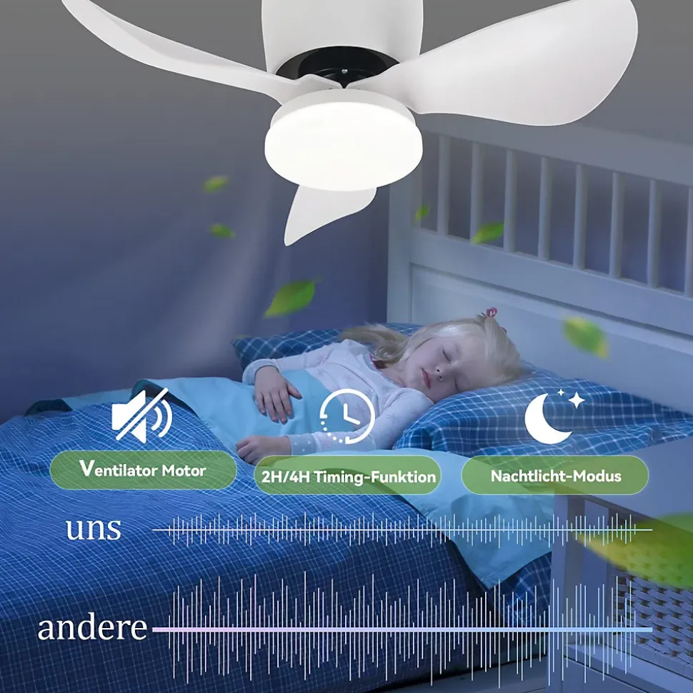 Design moderne : avec sa surface blanche élégante et ses 3 pales en ABS, ce plafonnier LED avec ventilateur donne une touche unique et moderne qui apporte non seulement une atmosphère particulière à votre salon et votre chambre, mais décore également mieux votre maison. De plus, le plafonnier LED est composé de puces LED de haute qualité, sans scintillement, lumière uniforme et douce, protégeant mieux vos yeux et ceux de votre familleVentilateur de plafond multifonctionnel avec éclairage : cette lampe ventilateur prend en charge le réglage de la luminosité de 10 % à 100 % et de la température de couleur (3000K – 6500K). 6 vitesses de vent peuvent être sélectionnées, ainsi qu’une minuterie de 2/4 heures et un mode veilleuse, vous pouvez régler la bonne vitesse de lumière et de vent en fonction de vos besoins, ce qui vous rendra plus détendu au travail ou en jouantVentilateur de plafond silencieux et rotation bidirectionnelle : la puissance du moteur de ce ventilateur de plafond avec éclairage est de 30 W, ce qui permet au ventilateur de fonctionner de manière stable et sûre avec moins de bruit. Le sens de rotation du ventilateur de plafond peut être commuté, ce qui non seulement fournit de la fraîcheur en été mais accélère également la circulation de l’air en hiver. Le ventilateur et la lumière peuvent fonctionner simultanément ou séparément, ce qui vous aide à économiser plus d’électricitéLarge application : le ventilateur de plafond multifonctionnel avec lumière est beau et pratique, adapté à une variété de scénarios, tels que le salon, la chambre d’enfants, le bureau, le studio et d’autres pièces de 10 à 25 mètres carrés, alliant parfaitement élégance et fonctionnalitéInstallation facile : le ventilateur de plafond avec lumière et télécommande est livré avec des instructions d’installation claires et des précautions dans l’emballage. Cela vous aidera à terminer l’installation rapidement. Les ailes sont amovibles pour un nettoyage et un entretien faciles.