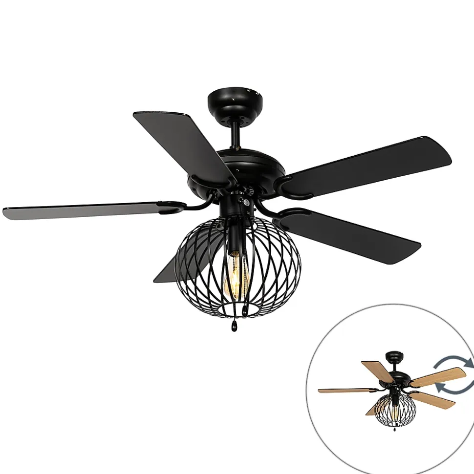 Le ventilateur de plafond Mistral est un véritable accroche-regard dans un intérieur industriel ! Ce ventilateur est fini en noir et fabriqué en acier. Les pales sont réversibles, vous pouvez donc choisir entre une finition noire ou bois. Le Mistral a un diamètre de 107,5 cm et une hauteur de 51,8 cm. Assurez-vous de commander une ampoule avec un culot E27 pour compléter la lampe. À noter : cette lampe n’est pas dimmable. Ce ventilateur de plafond dispose d’un mode été et d’un mode hiver. En mode été, le ventilateur tourne dans le sens inverse des aiguilles d’une montre pour fournir un refroidissement. En mode hiver, il tourne dans le sens des aiguilles d’une montre pour pousser l’air chaud vers le bas et rendre le chauffage plus efficace. Utilisez l’interrupteur à tirette pour contrôler la vitesse et allumer et éteindre la lampe. Choisissez Mistral et ne soyez plus jamais dans le noir !