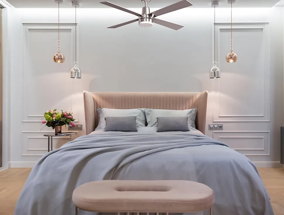 L’ELECTRON est un ventilateur de plafond à LED 12 W qui se distingue par sa multifonctionnalité. Il a un moteur à courant continu de 20 W qui atteint 212 tours par minute, en plus de ses 4 pales MDF et de grand diamètre (122cm) le rendent idéal pour les surfaces jusqu’à 25m2. Ce modèle est réversible, désestratificateur d’air, de sorte qu’en hiver, vous pouvez inverser ses pales pour que son mouvement déplace l’air chaud vers le bas, agissant en complément de votre système de chauffage et favorisant une consommation optimisée. Il comprend un thermostat dans sa base de sorte que vous pouvez le programmer pour que le ventilateur fonctionne en fonction de la température ambiante. Il offre un système HYPERSILENCE, une technologie super silencieuse qui ne dépasse jamais 38dB à la vitesse 3 et qui permet d’utiliser le ventilateur la nuit ou pendant les pauses, offrant des performances très silencieuses. Il a également une fonction Mémoire qui permet d’enregistrer les paramètres utilisés, à la fois en vitesse et en lumière, de sorte que lorsque vous éteignez le ventilateur, il est enregistré et redémarré avec les mêmes paramètres. Parmi ses nombreux avantages, il y a la protection IP20 contre la poussière, 6 vitesses, télécommande et connexion Wi-Fi via l’application Tuya Smart, pour contrôler le ventilateur depuis n’importe quel appareil mobile. Son design argenté est élégant et robuste. Il comprend deux tiges de 25cm et 12,5 et accepte les tiges de 60cm, ce qui le rend adapté à tous les types de plafonds.