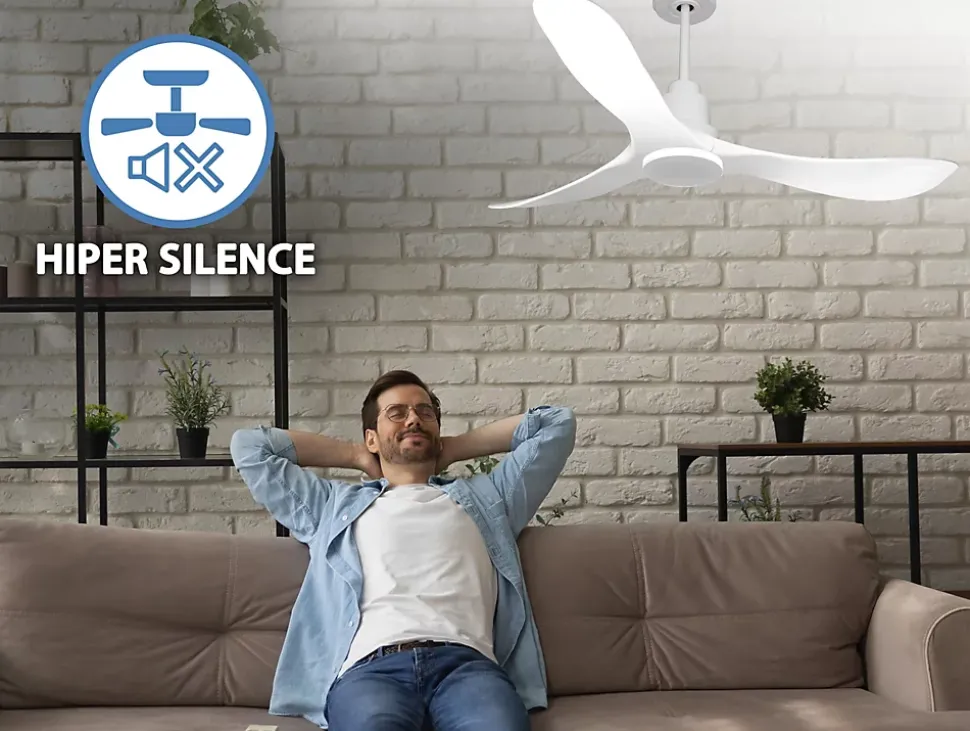 Ventilateur de plafond Réversible Thermostat Wifi Moteur à courant continu Toits en pente Télécommande Hypersilence Mémoire