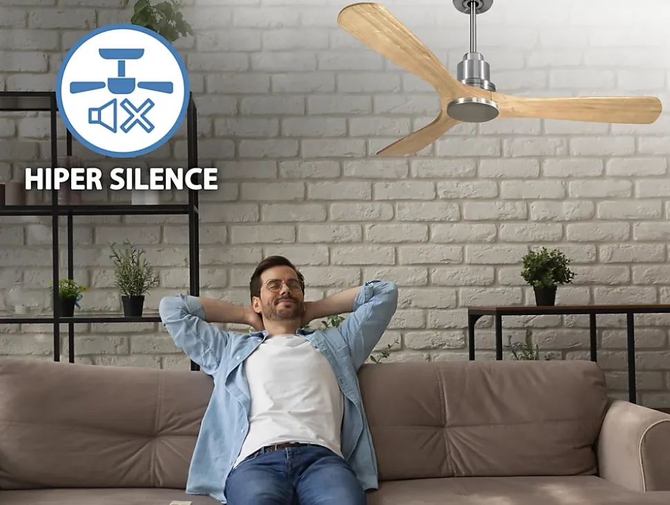 Le moteur à courant continu Klassfan by Purline est un moteur de haute qualité et de haute performance. Il peut être installé sur des toits d’une inclinaison allant jusqu’à 15° et est fourni avec deux tiges permettant de l’installer à la bonne hauteur (13,5 cm ou 25 cm). Il permet de monter 2 ou 3 pales (selon le modèle de pale), car il est doté d’une fonction d’auto-équilibrage. Tous les moteurs peuvent être équipés d’un kit d’éclairage.Il s’agit d’un moteur avec fonction Été/Hiver (déstratificateur d’air), ce qui permet d’inverser le mouvement du moteur en hiver, de sorte que sa rotation déplace l’air chaud vers le bas, en complément de votre système de chauffage et en favorisant une consommation optimisée avec d’importantes économies d’énergie. Il comprend également un thermostat dans sa base supérieure, qui permet de programmer le fonctionnement du ventilateur en fonction de la température ambiante.Le système breveté FullFlow constitue un avantage très important. Il permet de calibrer la consommation et la puissance du moteur en fonction des besoins des pales choisies, ce qui permet d’obtenir des résultats spectaculaires en termes d’efficacité énergétique. Notre système FullFlow permet une véritable polyvalence.Il dispose également d’une multitude d’avantages supplémentaires tels que 6 vitesses programmables (fullflow), une minuterie (8h) et la possibilité de contrôle à distance via une télécommande, une commande murale et une connexion WiFi avec l’application Tuya Smart, pour pouvoir utiliser le ventilateur à partir de n’importe quel appareil mobile. Il dispose également d’un système certifié Hypersilence, une technologie super silencieuse à la vitesse 3 qui permet d’utiliser le ventilateur la nuit ou pendant les pauses, offrant des performances très silencieuses et une très faible consommation d’énergie, avec des pales de 106 cm.