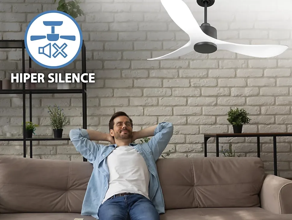 Ventilateur de plafond Réversible Thermostat Wifi Moteur à courant continu Toits en pente Télécommande Hypersilence Mémoire