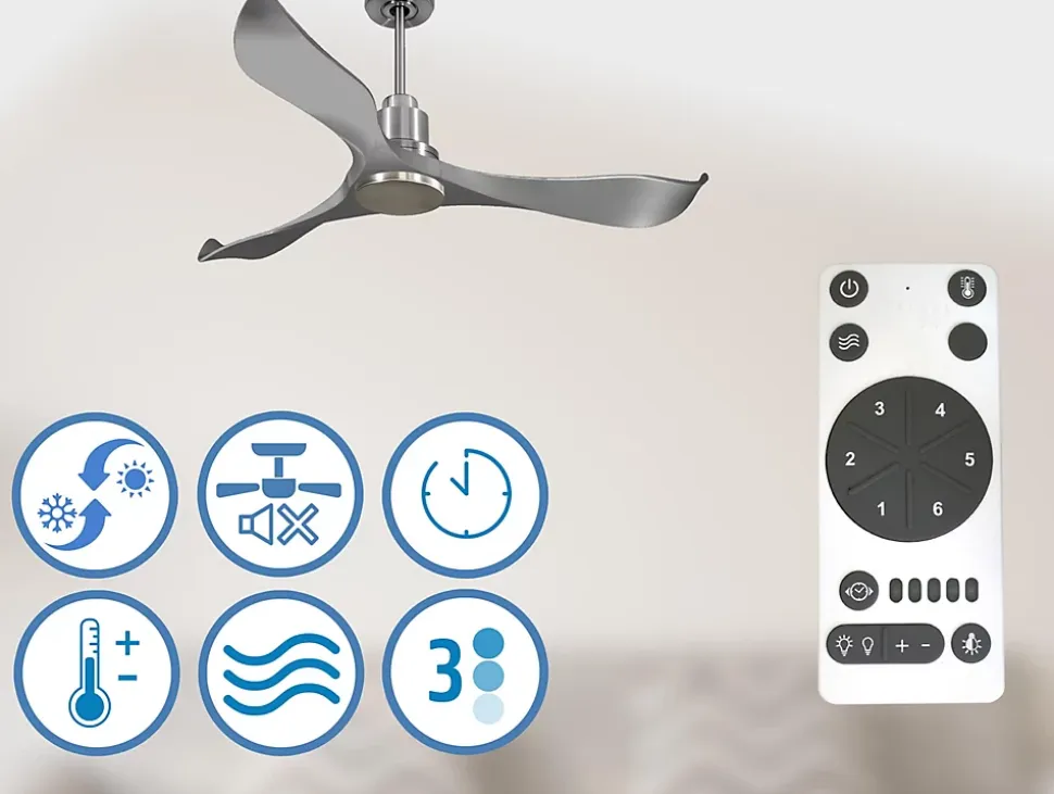 Ventilateur de plafond Réversible Thermostat Wifi Moteur à courant continu Toits en pente Télécommande Hypersilence Mémoire Shopi