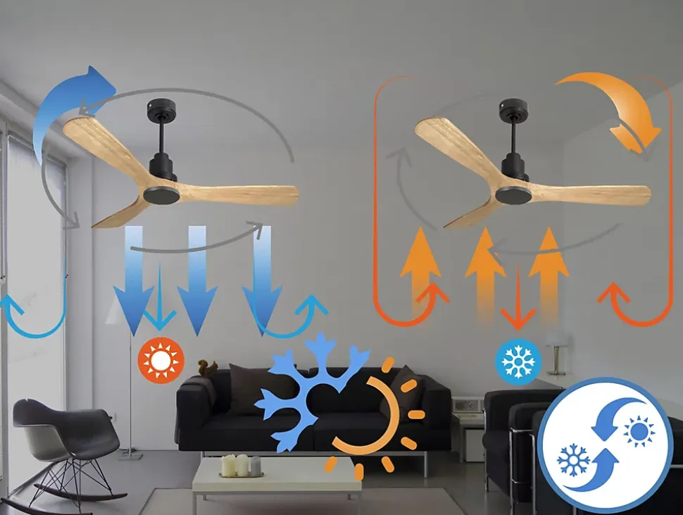 Ventilateur de plafond Réversible Thermostat Wifi Moteur à courant continu Toits en pente Télécommande Hypersilence Mémoire Shopi