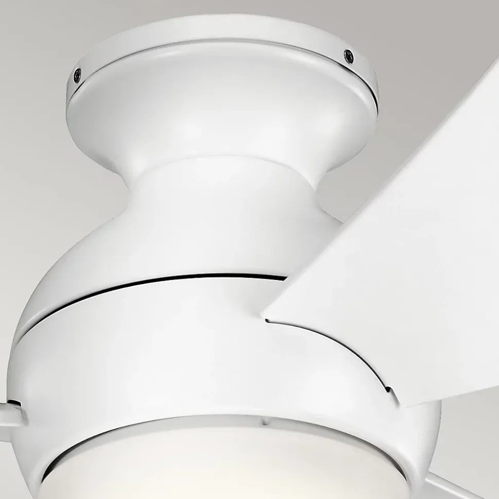 La collection Sola de Kichler est proposée en Blanc Mat et en Nickel Brossé. Conçue pour une utilisation en extérieur, elle est équipée d’un éclairage LED intégré et dimmable, ainsi que d’une installation encastrée. La forme du boîtier moteur inspirée par les globes apporte un style charmant à tout espace. Un capuchon de fixation métallique est inclus pour les installations sans éclairage. Garantie: moteur et pièces liées au moteur: 10 ans ; Eclairage Led et composants éléctriques: 5 ans ; Autres pièces: 2 ans.Vitesse de rotaton 247 / 123 tours / minute.