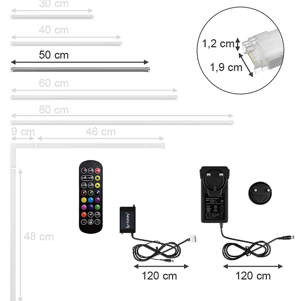 Cette barre de LED est une bonne décision pour tous ceux qui souhaitent éclairer leur maison avec style.Cette bande LED offre des couleurs RVB ainsi qu’un mode d’éclairage séparé en blanc chaud. Livrée avec des vis et du ruban adhésif pour une fixation facile.DIMENSIONS : La bande LED a les dimensions suivantes : profondeur : 1,5 cm, largeur : 50 cm, hauteur : 1,5 cm. Toutes les tailles détaillées sont indiquées sur les photos.MATÉRIEL : la bande LED flexible est composée d’aluminium et de PC faciles à entretenir.LIVRAISON : Bande LED, bloc d’alimentation avec câble, adaptateur de prise et télécommande, instructions de montage, matériel de montage