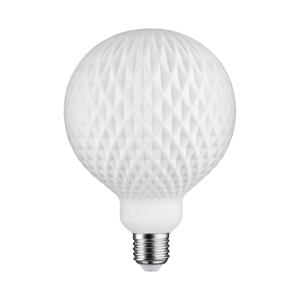 L’ampoule LED décorative White Lampion assure un éclairage périphérique uniforme et chaleureux. L’ampoule est gradable en continu et convient parfaitement aux suspensions ou aux lampes à poser. Grâce à son verre plein blanc mat haut de gamme et à sa structure de surface fascinante, cette ampoule attire tous les regards qu’elle soit allumée ou éteinte. Elle allie des formes classiques à une technologie LED efficace et est équipée d’une douille E27 standard.