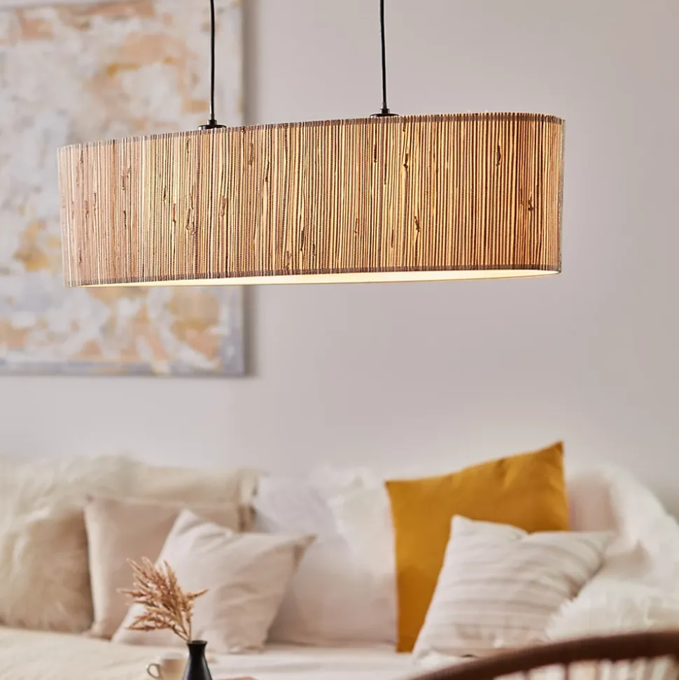 La suspension WIMEA noir/naturel est un luminaire élégant qui associe métal et jonc de mer pour un rendu naturel et chaleureux. Elle est équipée de deux douilles E27, compatibles avec des ampoules LED ou classiques jusqu’à 52W. Son design épuré et sa finition naturelle lui permettent de s’intégrer parfaitement dans des intérieurs contemporains ou rustiques. Les suspensions sont le point central de chaque pièce. Elles conviennent particulièrement comme éclairage au-dessus des canapés et des tables à manger. La particularité de cette lampe réside essentiellement dans la matière dont elle est fabriquée : jonc de mer. Elle fait partie des matériaux les plus durables. Le jonc de mer pousse rapidement et peut être cultivé sur des surfaces qui, par exemple, ne conviennent pas à la culture alimentaire, ce qui permet une utilisation très efficace des terres disponibles. Visuellement, le jonc de mer est également un véritable accroche-regard et apporte un peu de nature dans vos espaces de vie. Les ampoules ne sont pas incluses dans la livraison. La lampe est conçue pour être utilisée avec des lampes normales. Des ampoules LED peuvent être utilisées sans problème. La lampe est dimmable si des ampoules appropriées sont utilisées. Le matériel de montage nécessaire est inclus.