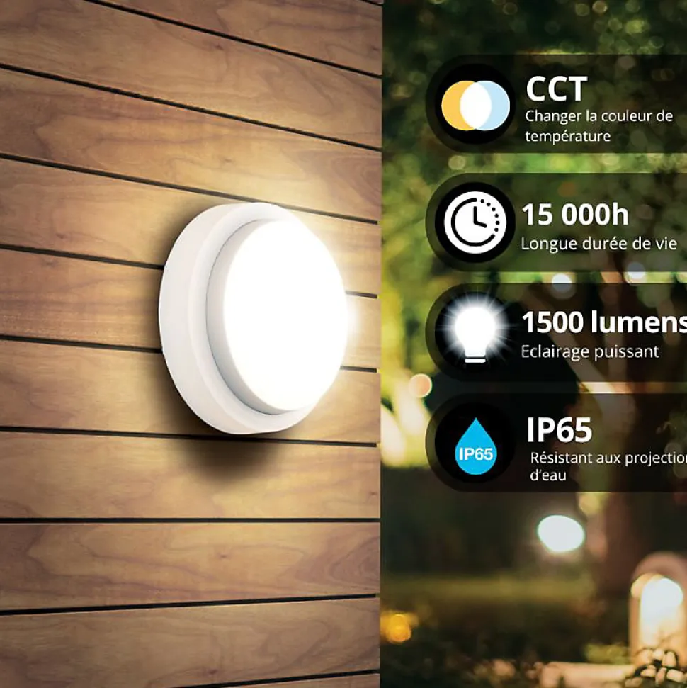 Xanlite – Hublot LED rond blanc, 1500 Lumens, CCT, Blanc chaud, Blanc neutre, Blanc froid – HUB850RBIPCCT