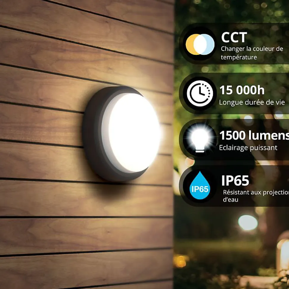 Xanlite – Hublot LED rond noir, 1500 Lumens, CCT, Blanc chaud, Blanc neutre, Blanc froid – HUB850RNIPCCT