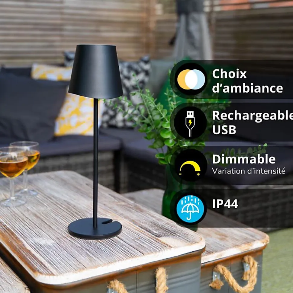 Xanlite – Lampe à poser LED IP44, 250 lumens, rechargeable USB-C, 38cm, CCT & Dimmable, Noir – LPM38ND