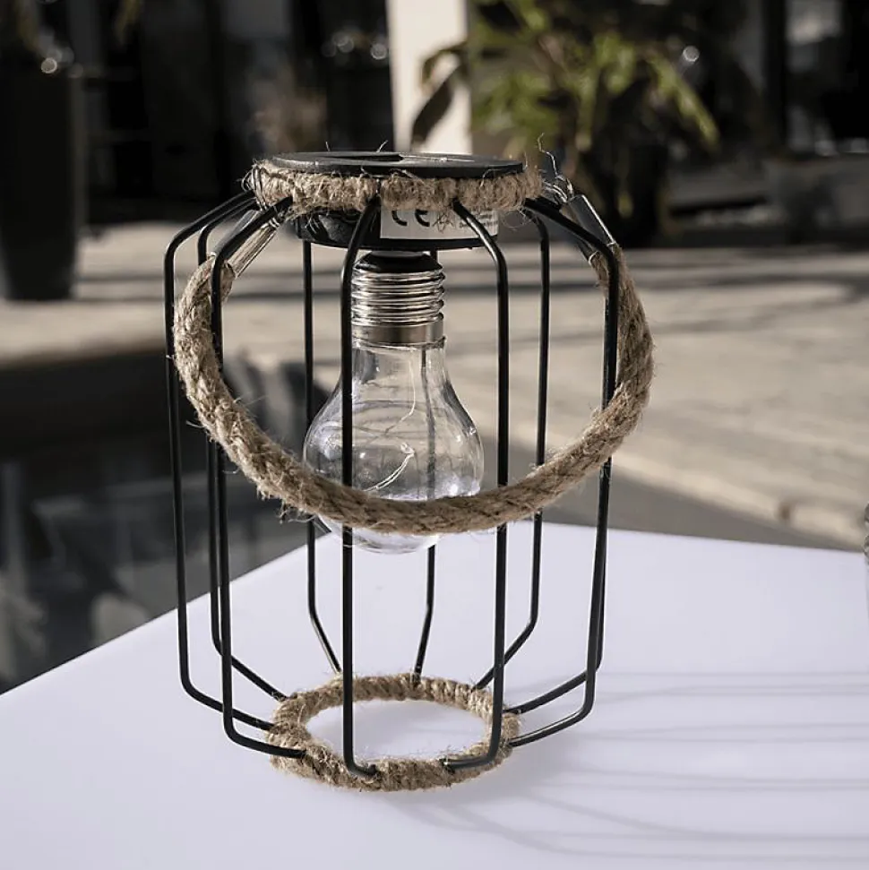 Xanlite – Lanterne Solaire IP44 Blanc chaud Métal et corde 6h d’autonomie – SORETRO4
