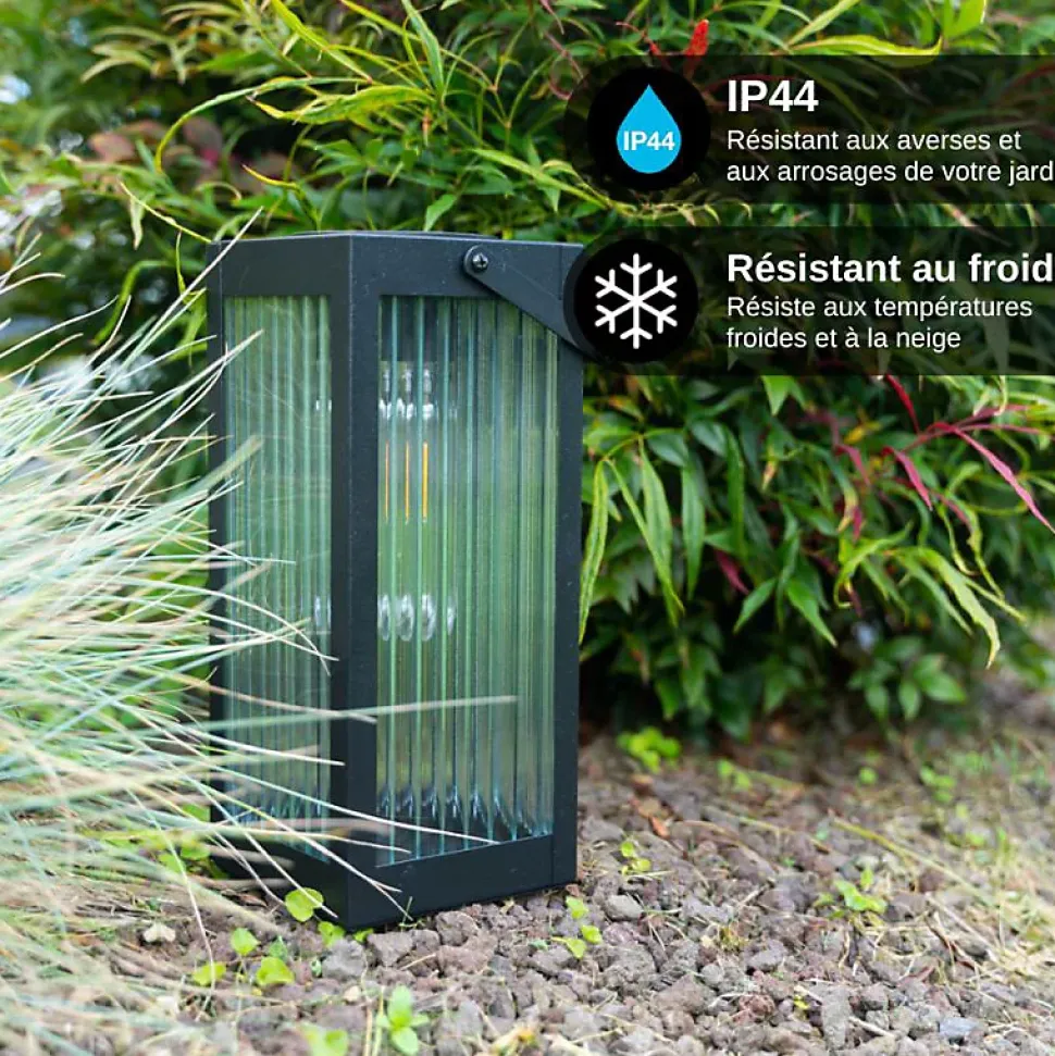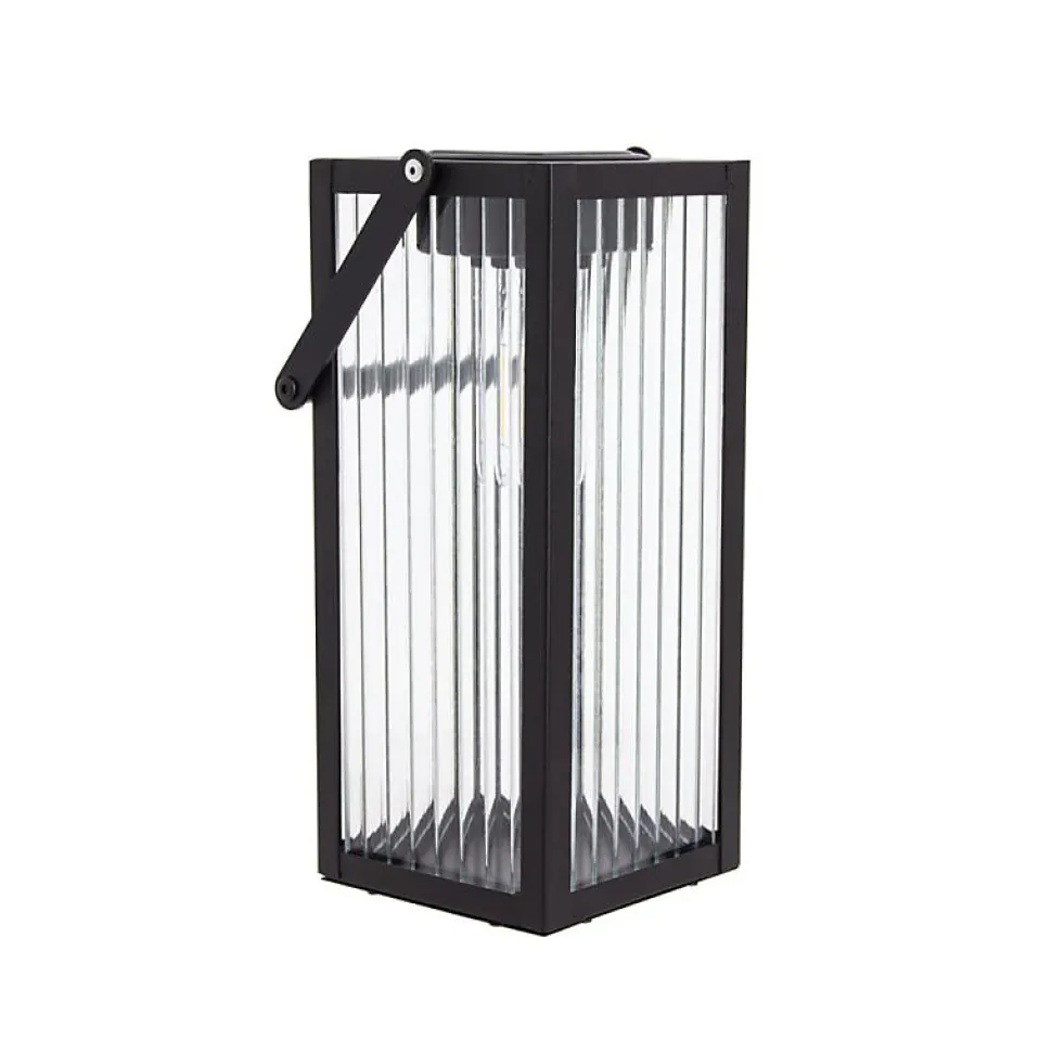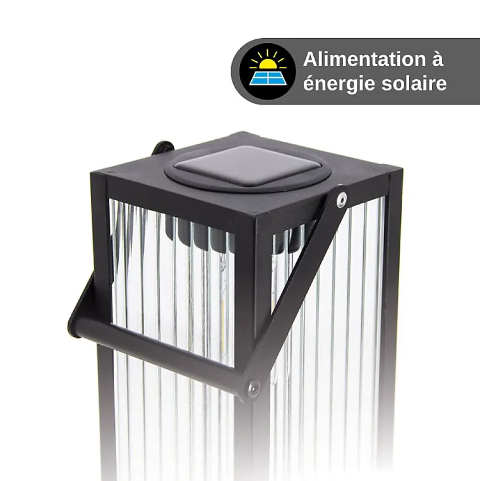 Xanlite – Lanterne Solaire Nomade 26cm IP44 – Verre ciselé & Métal – Noir – SOLARVC