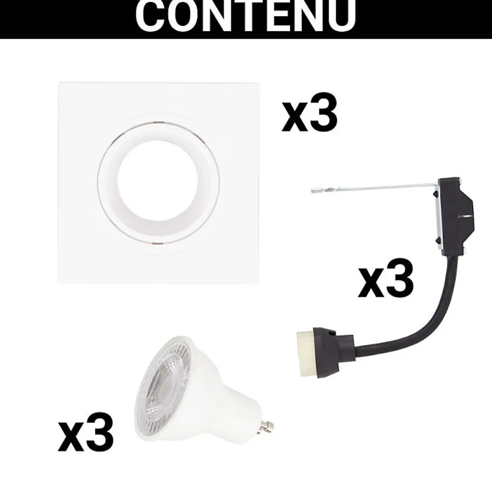 Xanlite – Lot 3 Spots GU10 50W 2700K Carré orientable Blanc IP20 – PACK3SP50CAB