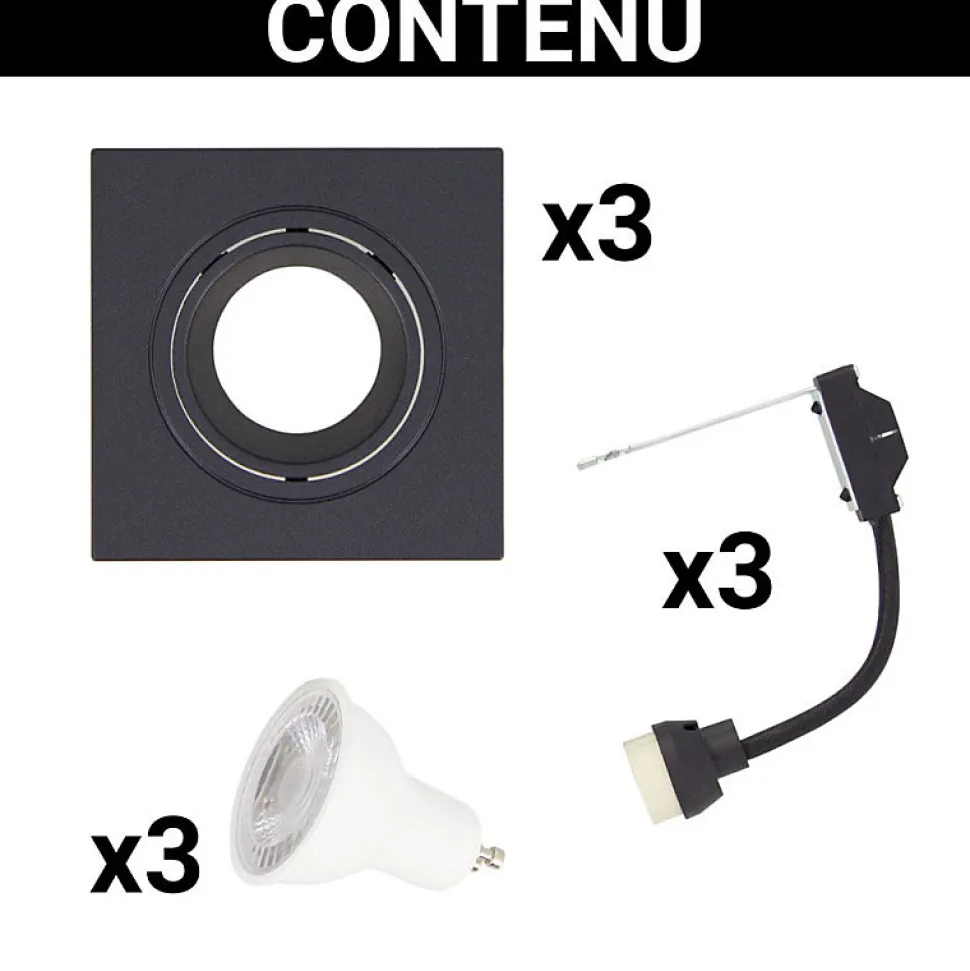 Xanlite – Lot 3 Spots GU10 50W 2700K Carré orientable Noir IP20 – PACK3SP50CAN