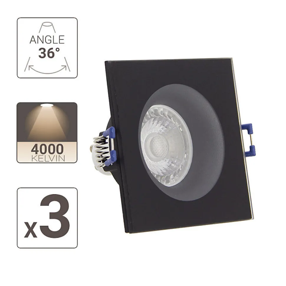 Xanlite – Lot 3 Spots GU10 50W 4000K Carré Noir IP44 – PAK3SP50CIP44NCW