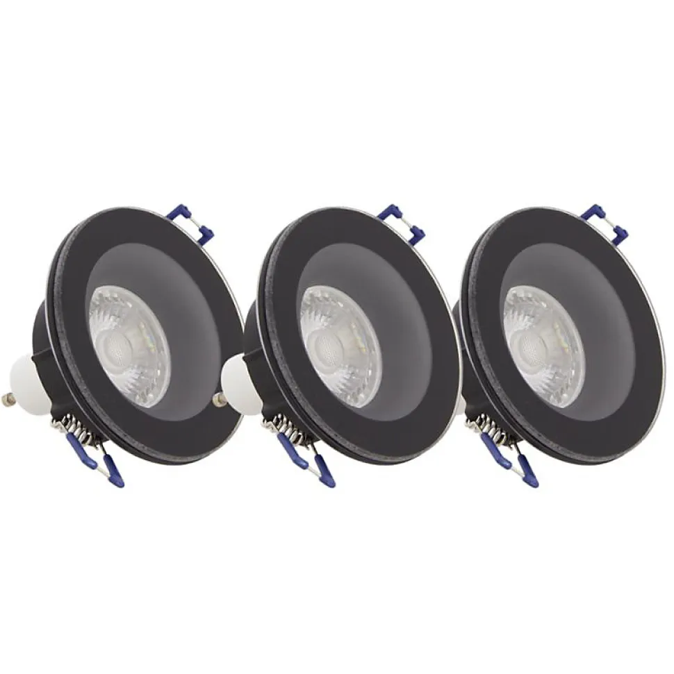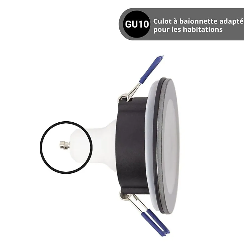 Xanlite – Lot 3 Spots GU10 Cons.4W Eq.40W 4000K Rond Noir IP44 – PAK3SP50RIP44NCW