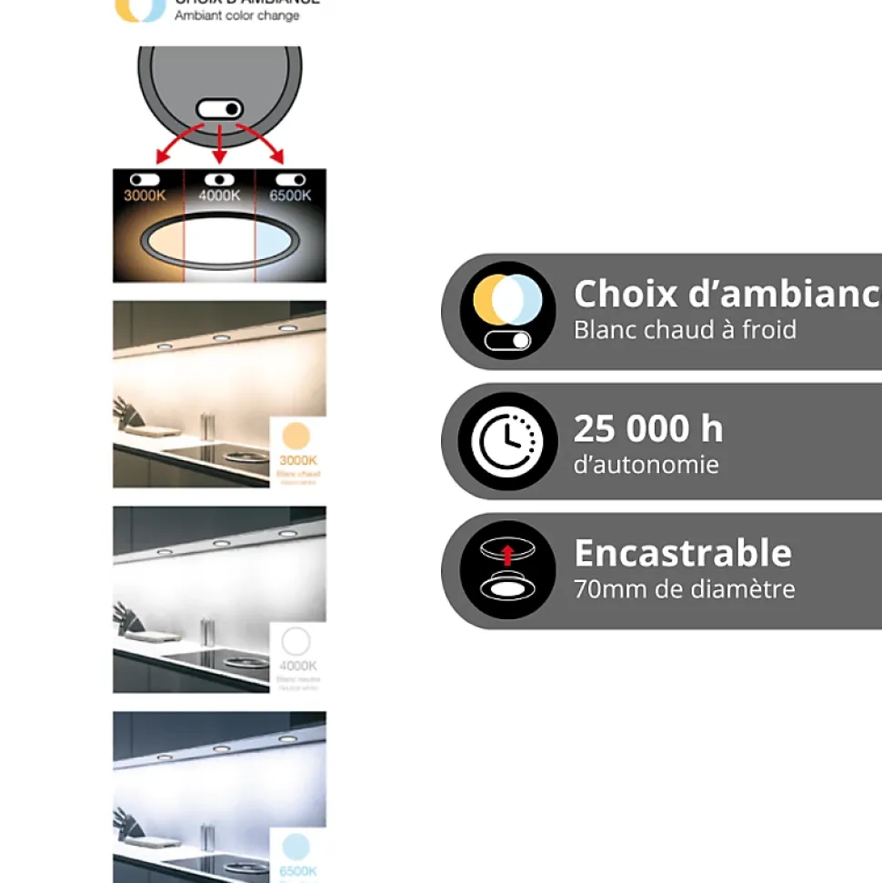 Xanlite – Pack de 8 spots LED intégrées CCT IP54 conso. 4W 345 lumens Blanc – PACK8SEL345BIPCCT