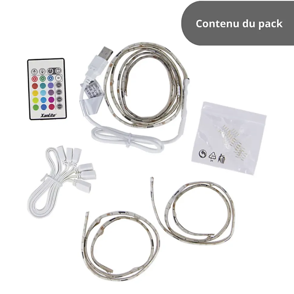 Xanlite – Ruban LED 3m USB 600 lumens – Extensible 6m – LSAK3USBEX