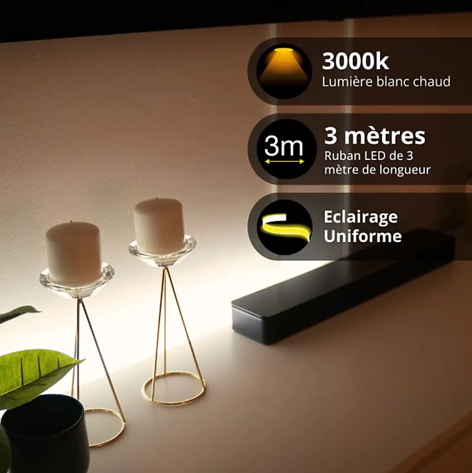 Xanlite – Ruban LED COB 3m Blanc – Extensible 6m – LSACOB3EX
