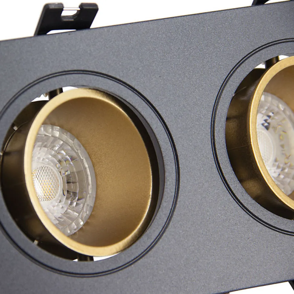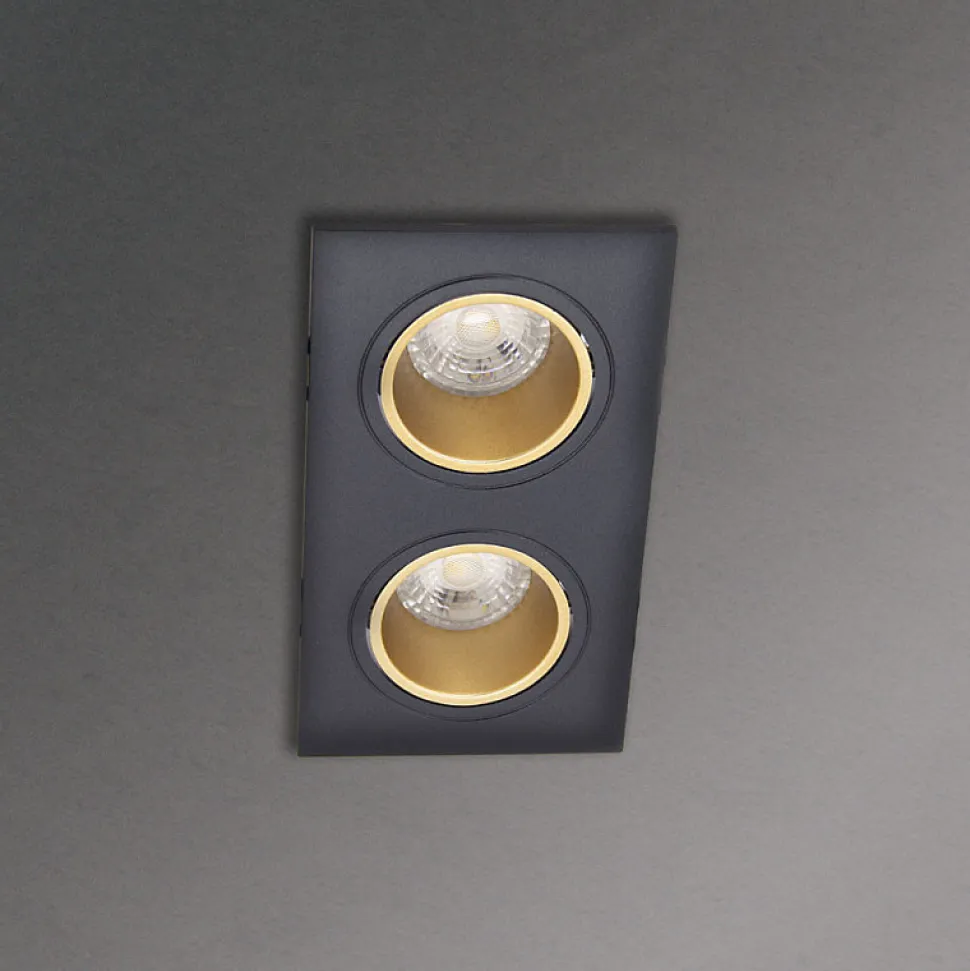 Xanlite – Spot 2 têtes GU10 50W 2700K Carré orientable Noir et or IP20 – SP502TCANO