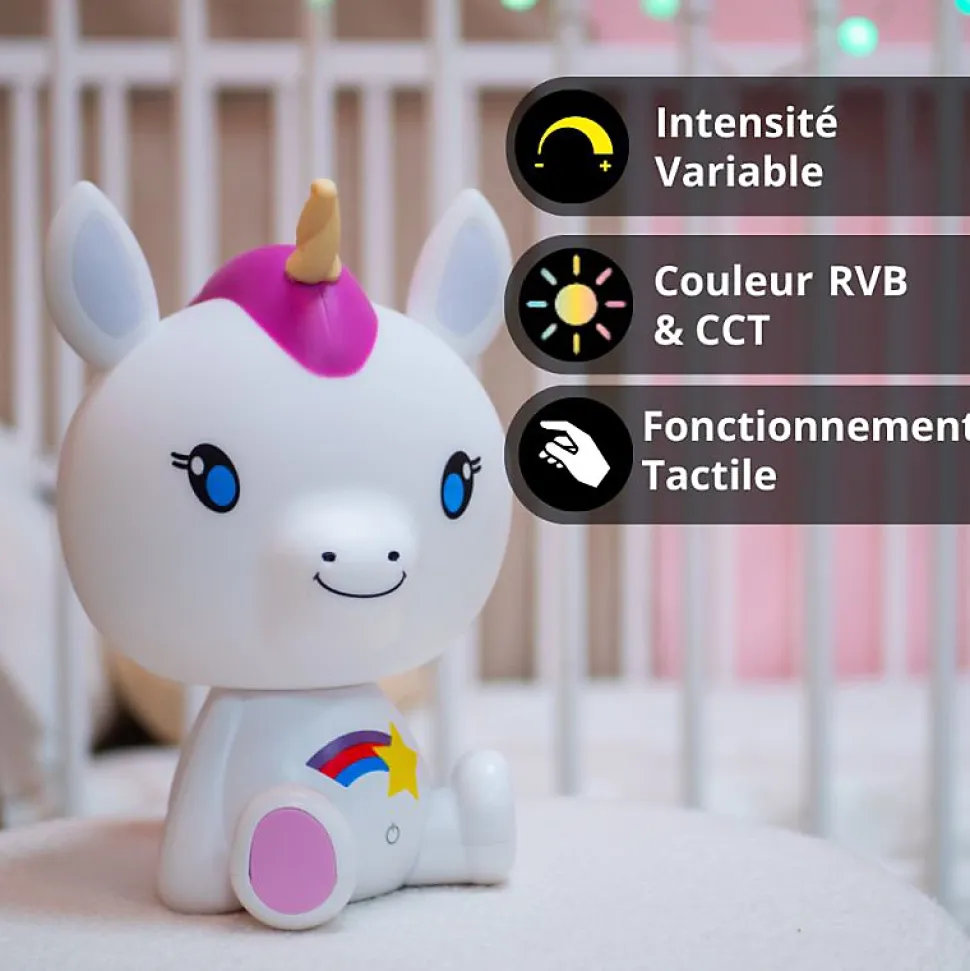 Xanlite – Veilleuse Licorne LED, intensité variable, USB rechargeable, RVB / Blanc chaud – VLLICORNE