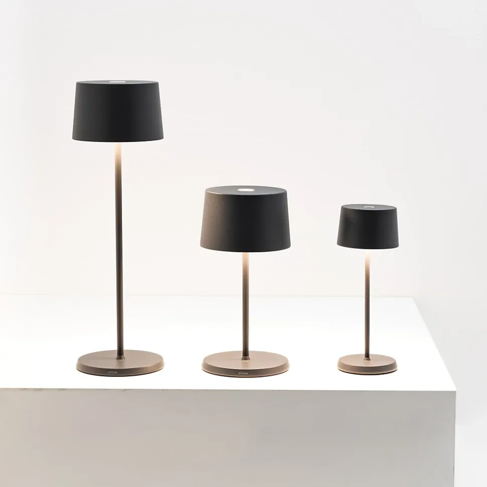 Olivia micro est une lampe design idéale pour une utilisation dans les extérieurs, les gazebos, les bars, les restaurants et les espaces de détente, elle est également largement utilisée dans les chambres, les salons et les bureaux professionnels. Lampe de table LED design également adaptée à une utilisation en extérieur.DONNÉES TECHNIQUESGRADATEUR TACTILE LED2200-2700-3000K | IRC > 80183-187-225 ml | 2,2W | IP655 Vcc maximum 1ADimension : Ø 7,5×20 cmCorps en aluminium anodisé brossé ou peint et diffuseur prismatique en polycarbonate. Convient pour un usage externe (lampe IP65) et interne (lampe sur socle de chargement IP20).Résistance aux chocs (IK07) et au brouillard salin (1500h). Dure environ 9 heures à puissance maximale. Temps de charge à 1A : 4,5 hBatterie au lithium rechargeable et remplaçable