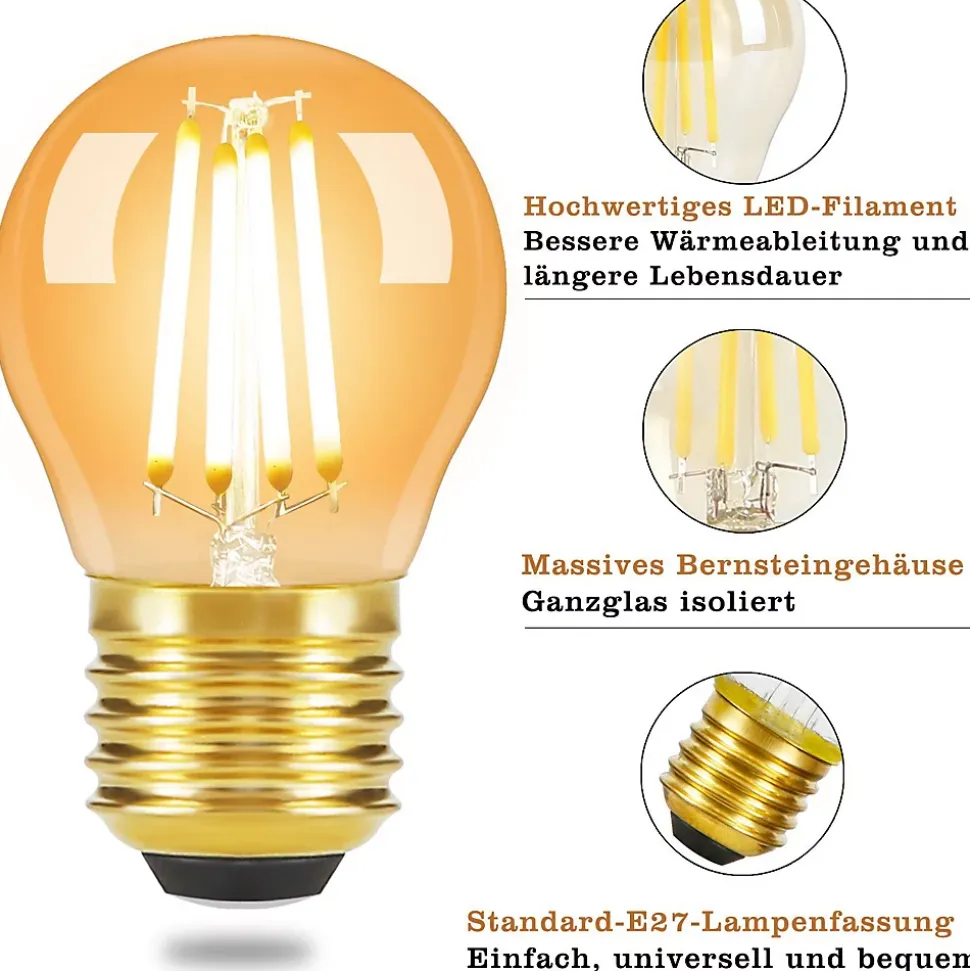 Économie d’énergie & : cette ZMH Ampoule edison vintage e27 a un effet d’efficacité énergétique efficace, remplace l’ ZMH Ampoule traditionnelle de 40w, durée de vie moyenne de 20000 heures, cela permet d’économiser jusqu’à 90% par rapport aux ZMH Ampoules traditionnelles ; avec des filaments led de haute qualité, la source lumineuse est constante et ne scintille pas.Lumière chaude et confortable : la lumière blanche chaude 2700k des ZMH Ampoules led est plus chaude et plus agréable. C’est idéal pour un éclairage décoratif nostalgique et ancien. En même temps, le beau verre brun attire l’attention.Magnifique design en verre : l’ ZMH Ampoule edison classique avec son design en verre clair et son filament exposé. L’ ZMH Ampoule décorative est équipée d’un culot e27 standard et peut être vissée directement dans n’importe quel culot e27 pour une installation facile.Compatible universelle : cette source de lumière vintage peut être facilement installée sur des lustres, des appliques, des plafonniers, des lampes de table, etc. Elle convient pour votre maison, votre salle à manger, votre salon, vos cafés, vos restaurants, vos musées, vos galeries d’art et vos magasins et crée une ambiance unique pour vous.