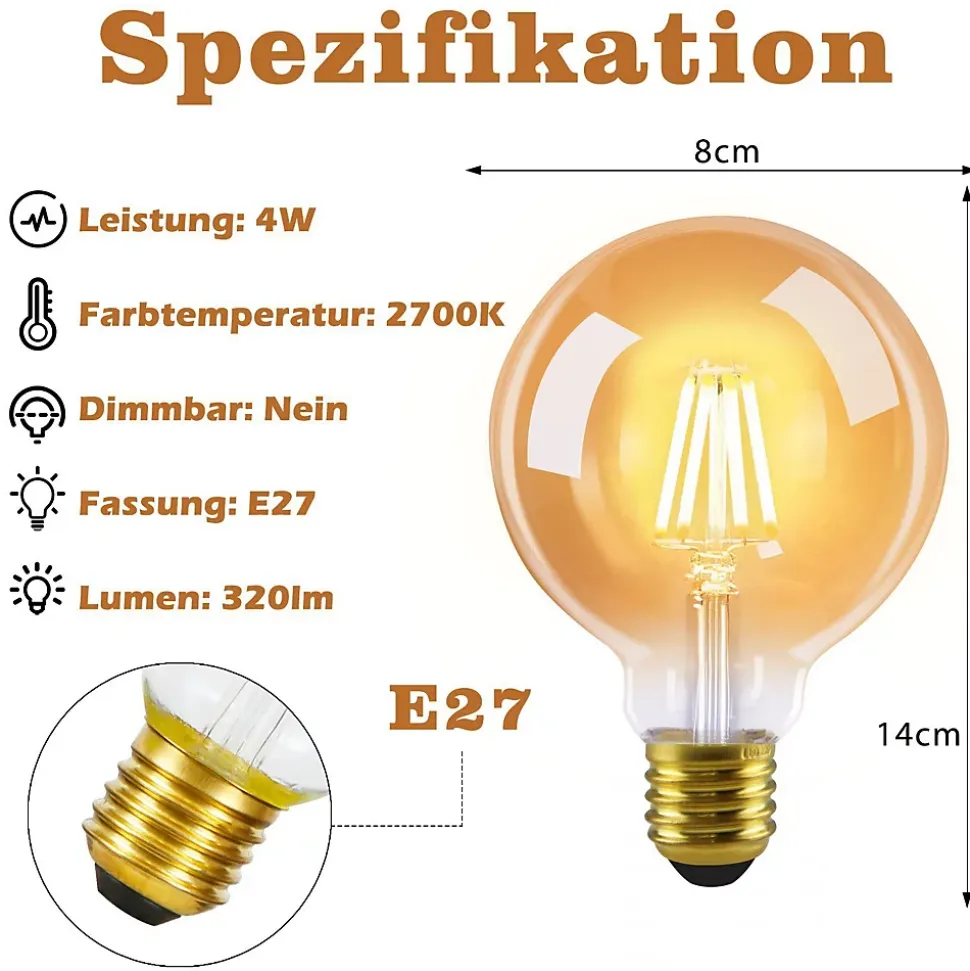 Économie d’énergie &: cette ZMH Ampoule vintage edison e27 a un effet d’économie d’énergie efficace, remplaçant les ZMH Ampoules traditionnelles de 40w, économisant jusqu’à 90% par rapport aux ZMH Ampoules traditionnelles ; avec des filaments led de haute qualité, la source lumineuse est constante et ne scintille pas.Cette ZMH Ampoule edison rétro est une lumière blanche chaude décorative de 2700k, les bulbes sont sphériques avec un diamètre moyen de 80mm. Une lumière douce et chaude, inoffensive pour la peau et les yeux, romantique, qui crée une lumière agréable et une atmosphère confortable.Magnifique design en verre : le corps en verre est très résistant aux rayures. Les ZMH Ampoules led filament rétro sont beaucoup plus chaudes, l’ ZMH Ampoule en verre a une belle couleur, ce qui donne à l’atmosphère un aspect rétro et nostalgique.Universel : elles sont superbes avec une douille et une corde ou un long câble et peuvent aussi être facilement installées dans des suspensions, des appliques, des lampes suspendues, des plafonniers, des lampes de table, etc. Convient pour votre maison, salle à manger, salon, café, bar, musée, pavillons d’art et magasins, etc, créant une atmosphère très agréable.