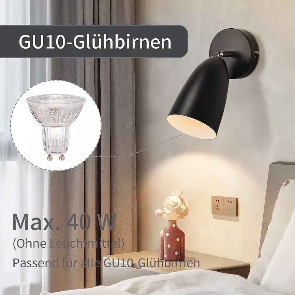 [angle réglable flexible] l’applique murale peut être tournée à 180° et permet de cibler la lumière – idéale pour la cuisine, la chambre, le couloir et la cage d’escalier.[design durable] fabriqué en fer de haute qualité pour la stabilité et la durabilité, avec une durée de vie allant jusqu’à 20000 heures pour un éclairage fiable dans tous les intérieurs[design sobre et mat] en noir mat ou en blanc, cette applique s’intègre parfaitement dans les intérieurs modernes et ajoute une touche de style à la pièce.[compatible avec les ampoules gu10] convient aux douilles gu10 (sans ampoule), 40 w maximum, pour créer différentes ambiances lumineuses, d’une atmosphère chaleureuse dans la chambre à coucher à un éclairage clair dans le couloir[installation facile] l’applique murale est livrée avec un kit de montage complet, ce qui rend l’installation rapide et facile – idéale pour des endroits comme la cuisine ou les escaliers.: