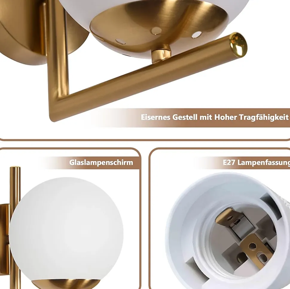 Design raffiné avec abat-jour en verre blanc laiteux et métal brillant. Douille E27, puissance maximale de 40W, dimensions 22*20*15 cm. Facile à installer. Adaptée pour différentes pièces et lieux publics.