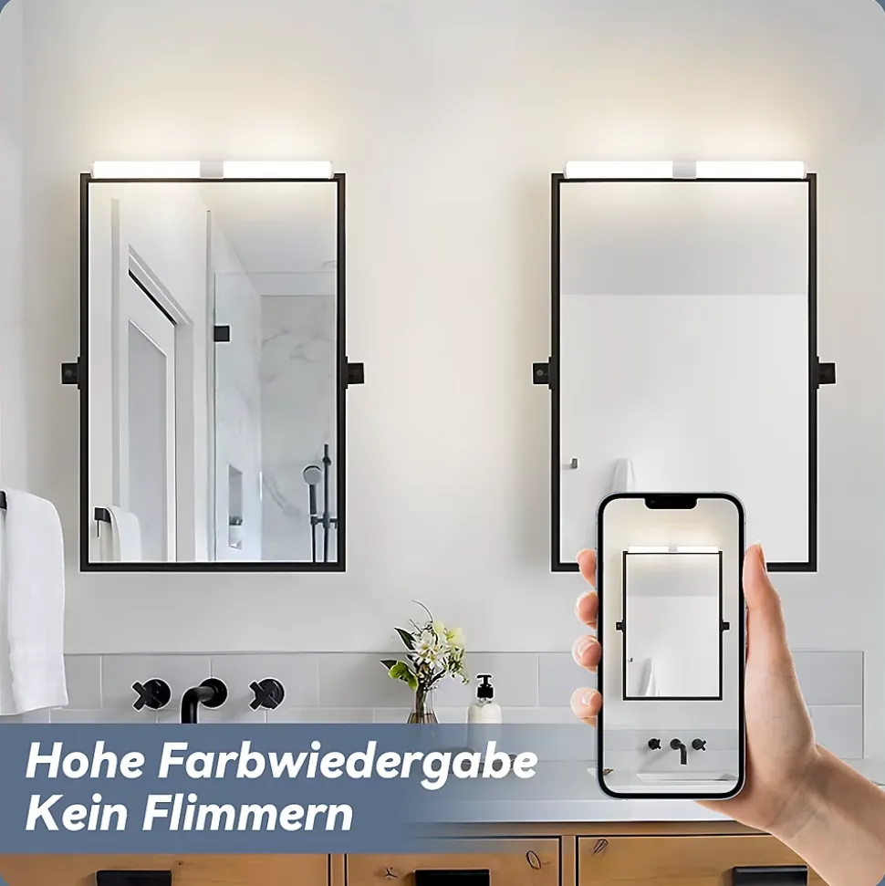 Étanche ip44. Ce luminaire pour miroir de salle de bain est fabriqué en pc et ses bornes de connexion sont équipées de couvercles d’étanchéité pour garantir la sécurité du circuit et empêcher la pénétration de corps étrangers. Cela permet d’éviter les dommages causés par les éclaboussures d’eau, vous permettant ainsi d’utiliser le luminaire en toute sécurité. Par conséquent, les luminaires led pour salle de bain sont particulièrement adaptés à l’éclairage des couloirs, des salons et des salles de bain. Installation facile. Ce luminaire de salle de bain est très pratique. Livré avec deux supports pré-percés et amovibles et tout le matériel de montage nécessaire pour l’utiliser avec différentes lampes de votre maison. Que vous installiez ce luminaire pour miroir comme lampe fixe sur une armoire, un mur ou un miroir (épaisseur ≤ 7 mm), il remplira votre maison de lumière. Luminaire led pour salle de bain avec une lumière agréable : le luminaire pour salle de bain avec éclairage émet une lumière blanche neutre de 4 000 k, sans teinte jaune ni bleue. Les lumières douces et lumineuses diffusent une belle lueur. Idéal pour être placé au-dessus d’un miroir. La couleur blanche neutre de la lumière garantit un éclairage optimal et une protection des yeux pour un confort optimal lors du maquillage, du rasage et des soins corporels quotidiens. Sûr et fiable : l’applique murale de salle de bain 8 w protège la led grâce à un abat-jour en polycarbonate. Robuste et résistante, elle ne rouille pas facilement. L’applique pour miroir se branche directement sur le cordon d’alimentation et fonctionne avec un interrupteur classique, très pratique et sûr. Cette applique murale led a une durée de vie de 20 000 heures. Elle est idéale pour éclairer un miroir à la maison, à l’hôtel, au bureau ou dans un espace de travail. Nombreuses applications : son design épuré et sa finition chromée miroir confèrent à cette applique led à économie d’énergie un aspect moderne et de haute qualité.